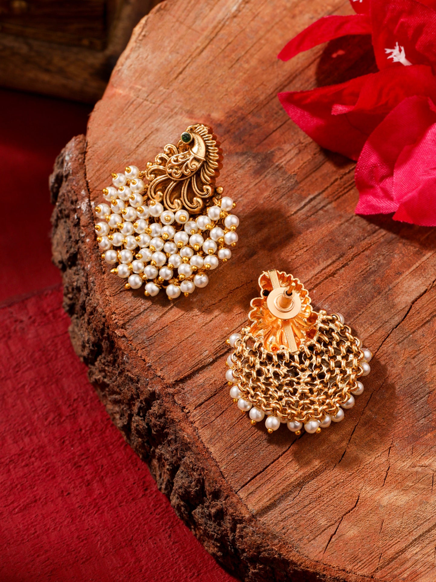 Introducing the Gold Plated Pearl Drop Earrings by Yellow Chimes, designed to bring sophistication and charm to every attire. These stunning peacock-shaped earrings measure 4.5 cm in length and 3.4 cm in width, crafted from high-quality gold-plated brass for durability. Weighing only 25 grams, they offer lightweight comfort without compromising on style. Perfectly packaged in an elegant box, these earrings are not just a treat for yourself but also make a fabulous gift for loved ones on birthdays and anniversaries.