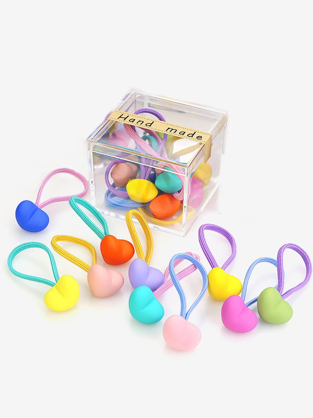 Melbees by Yellow Chimes Combo Set of 14 Bow Hair Bands and Heart Charm Hair Ties Ponytail Holders with Nice Box for Kids Girls Hair Accessories (Pack of 14), Multi-Color, Medium Pack of 14. 10 hair ties, 4 Hair Bands. Size: Hair ties -2 CM Diameter, 1.5 CM Charm width, Box for easy storage. Hair Band: 11 CM Daimeter, 8.5 CM Charm width No Hurt to Hair -Well stretching and good recovery,the Ponytail Holder Bands not easy to be broken and out of shape. Soft and stretchy, does not become loose easily. No break, tangle or damage hair Easy to use - It's easy to wear on the hair and remove, sturdy and durable, always keep in the cute stylesThe Hair Bands in Candy colors are super soft Material with no sharpening points- soft and comfortable to use Gift Idea - Good gift for girls, Kids, Toddlers, Baby, or Birthday gifts, Christmas gifts, Valentines gifts, or Festival gifts