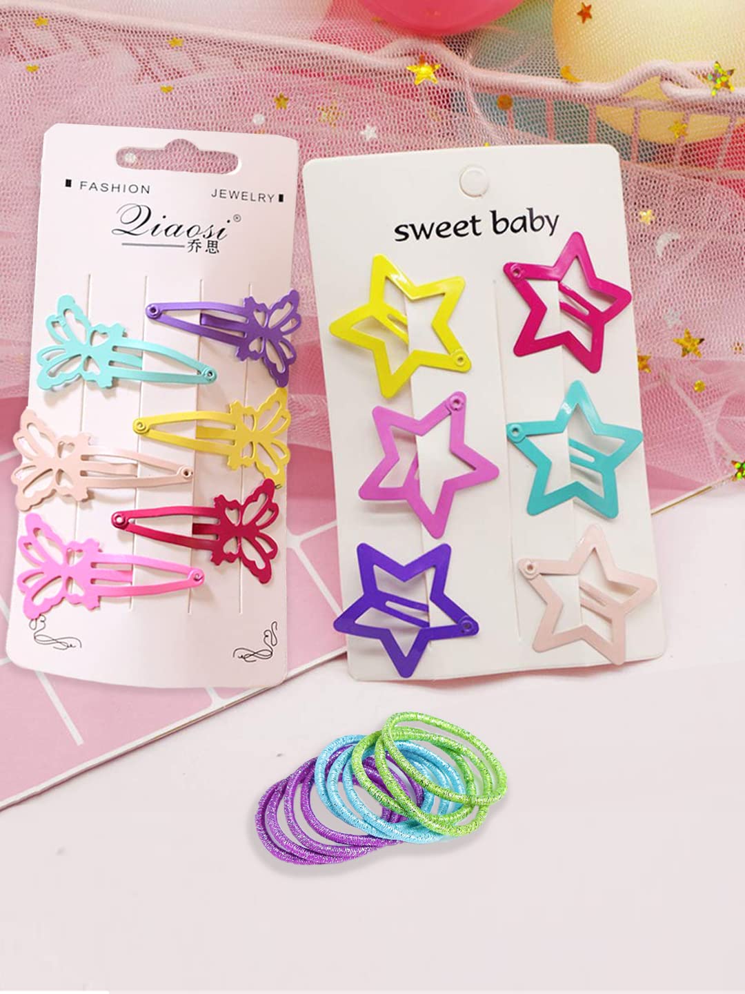 Melbees by Hair Clips for Girls Kids Hair Clip Hair Accessories for Girls Baby's Multicolor 12 Pcs Snap Hair Clips With 10 Pcs Rubber Bands Set for Kids Tic Tac Clips for Baby Teens Toddlers