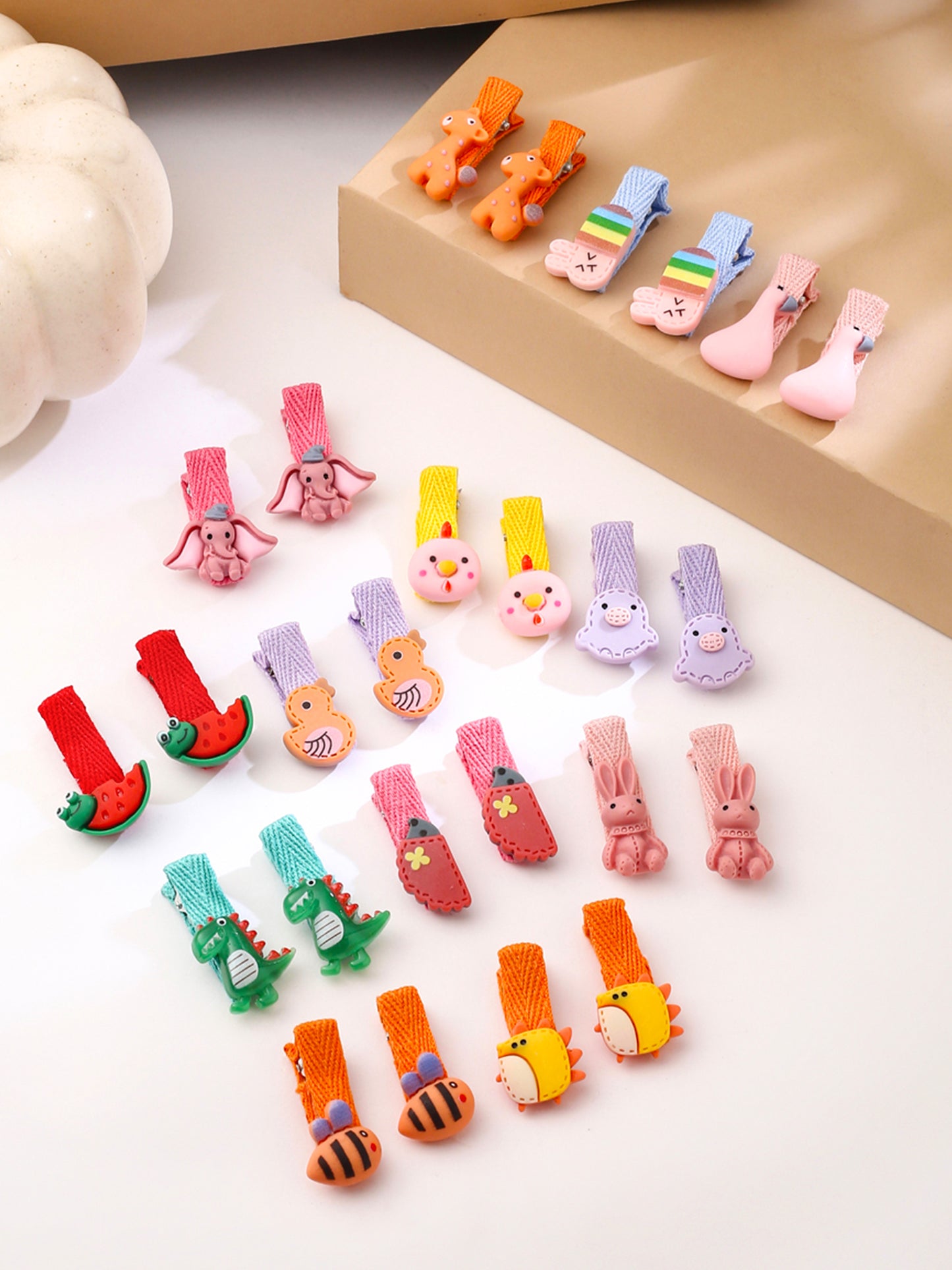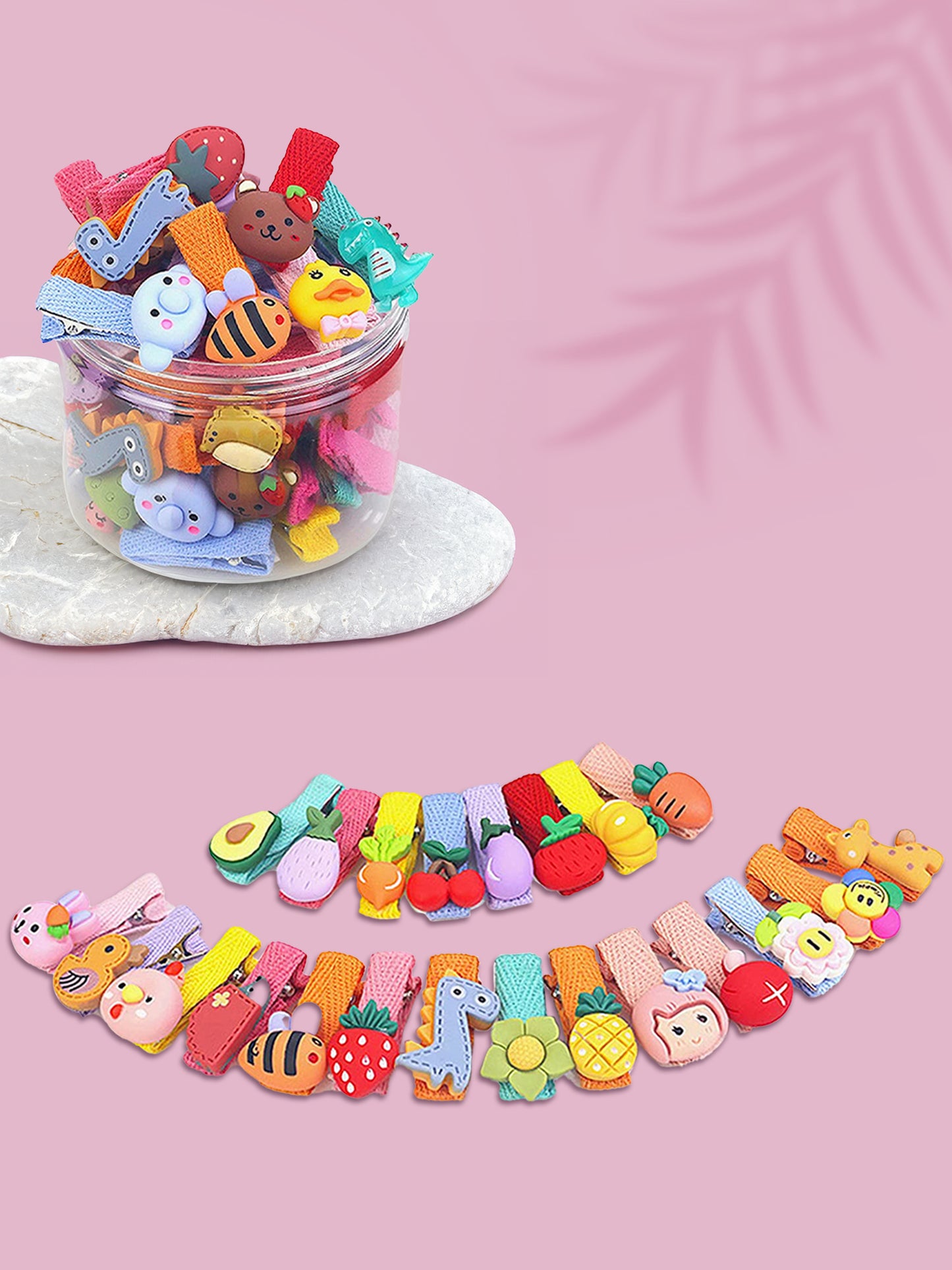 - The pack includes 26 pcs Hair Clips for girls in multiple patterns kids hair accessories lovable characters in candy Colors. The Hair clips fro baby girls comes in a storage box for easy keeping.These hair clip will come in assorted patterns for you to match different outfits. You can change the styles frequently to make daily clothes charming and attractive.