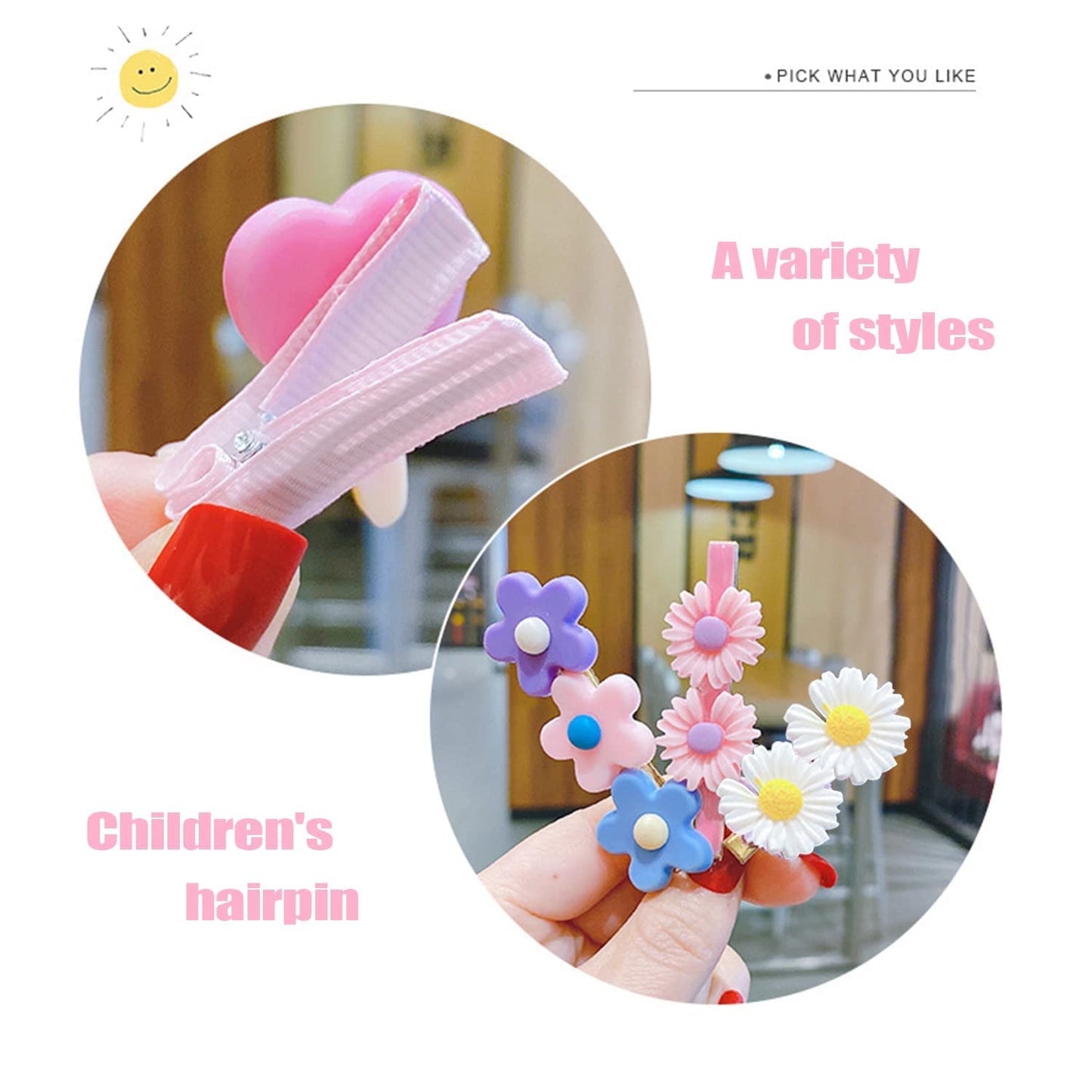 - Cute Combination of Styles: Each set includes 14 unique hair clips in an array of colors and designs, including candy, rainbows, flowers, fruits, lollipops, and ice cream. Perfect for matching with different outfits!