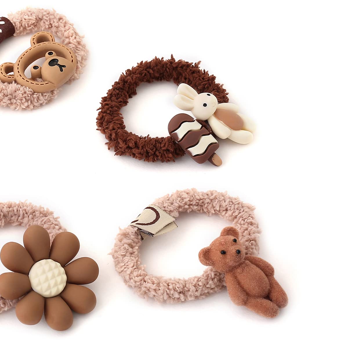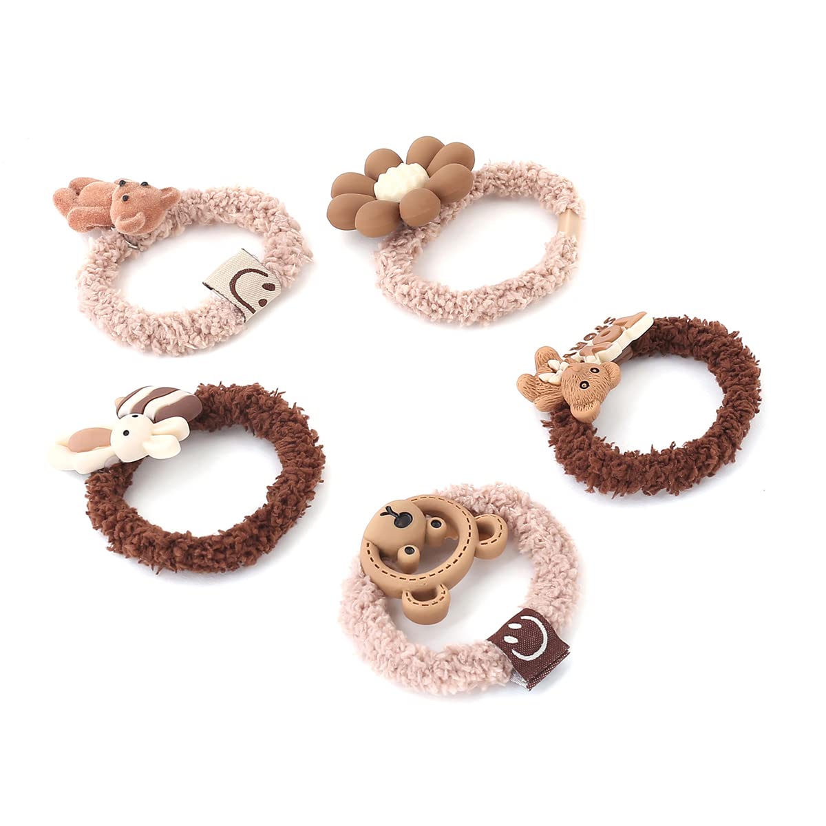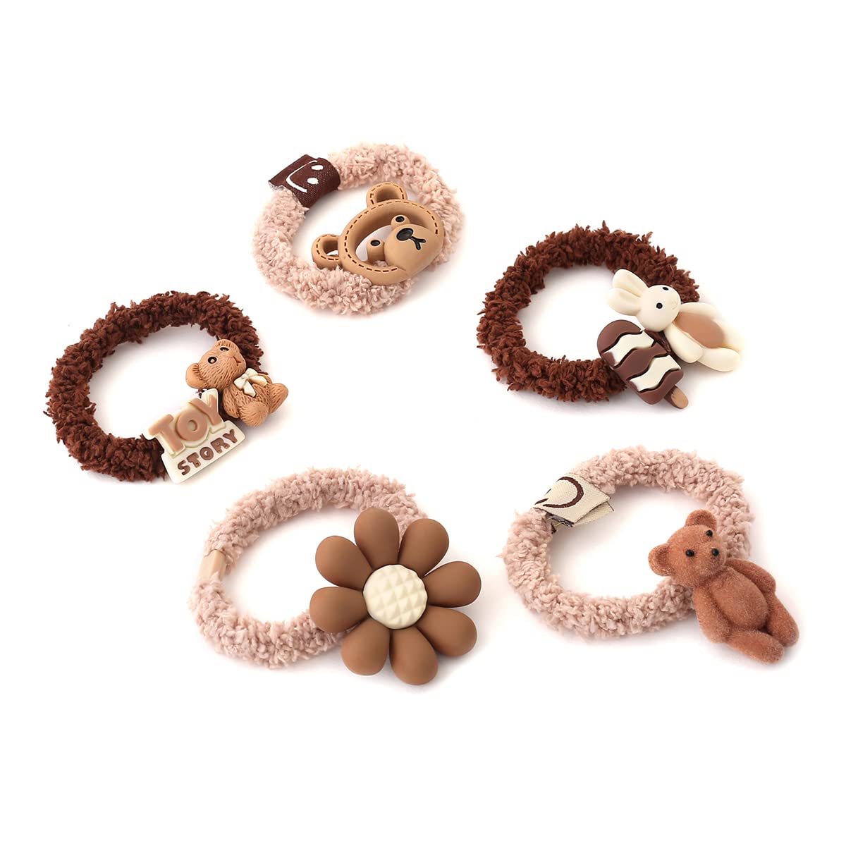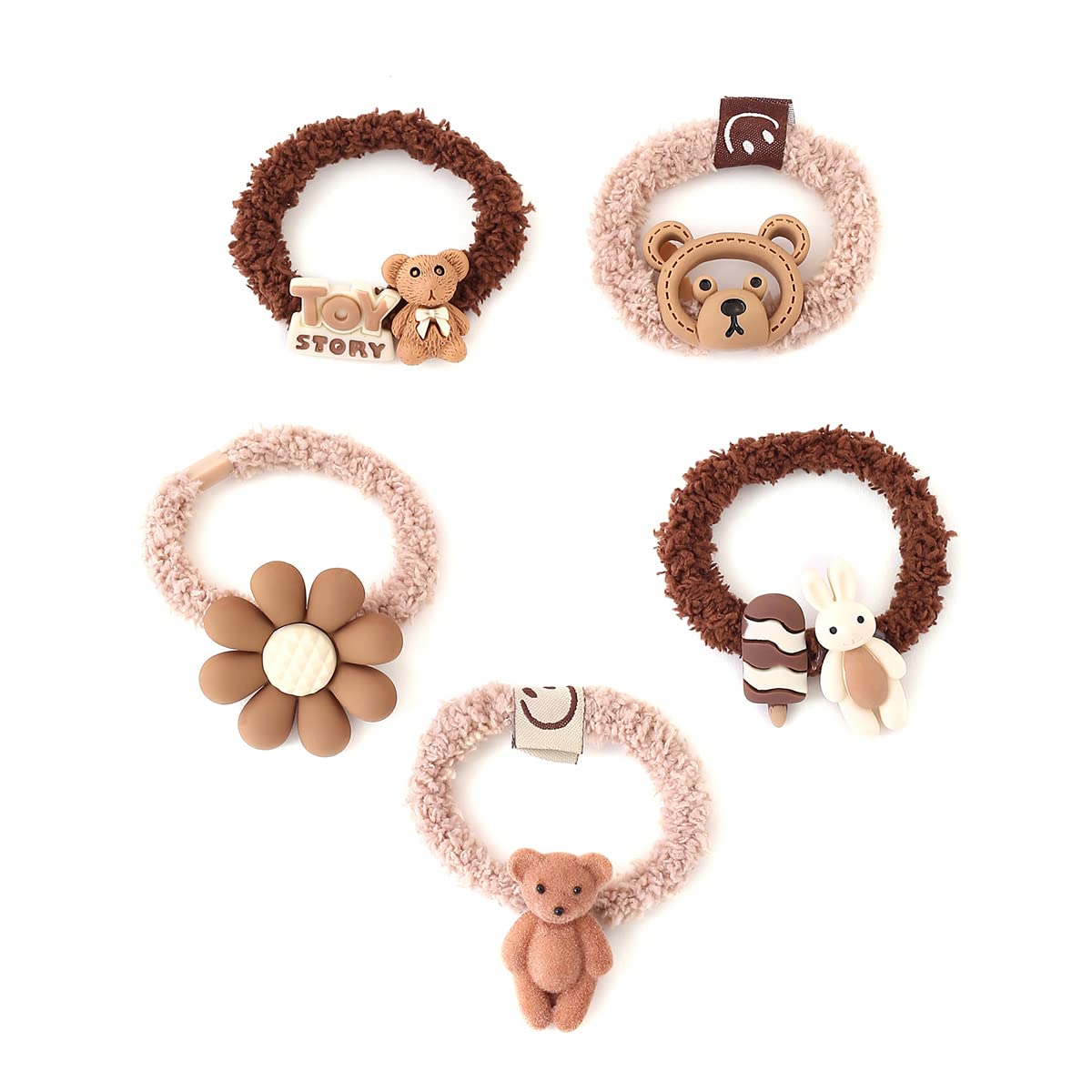 - Set of 5pcs Brown Color With Loving Cute Characters Hair Ties Hair Bands. An Rubber bands is used to keep the hair back, off the face. Wear various trendy hairstyles with these trendy Rubberbands.Small & lightweight Rubberbands for girls , beautiful and cute Ponytail Holders for girls, durable and unfading for long times wearing.For Baby Girls Teens Toddlers, Assorted Styles For Toddlers.
