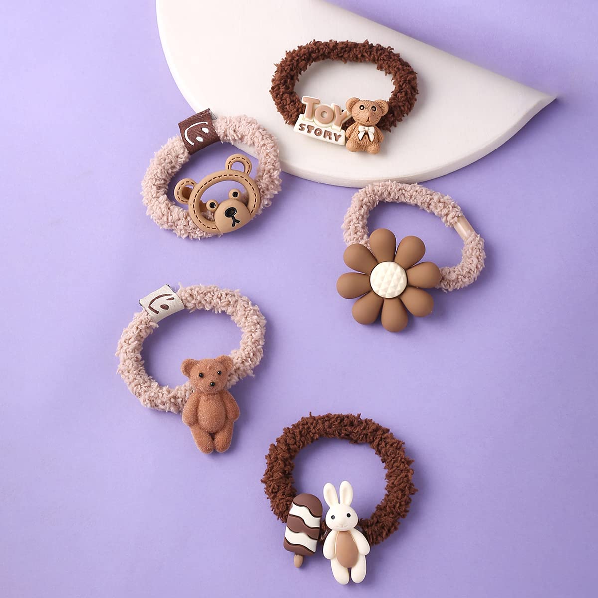 Melbees by Hair Rubber Bands for Girls Kids Hair Accessories for Girls Set of 5 Pcs Rubberbands Brown Loving Cute Characters Ponytail Holders for Girls Kids Teens Toddlers