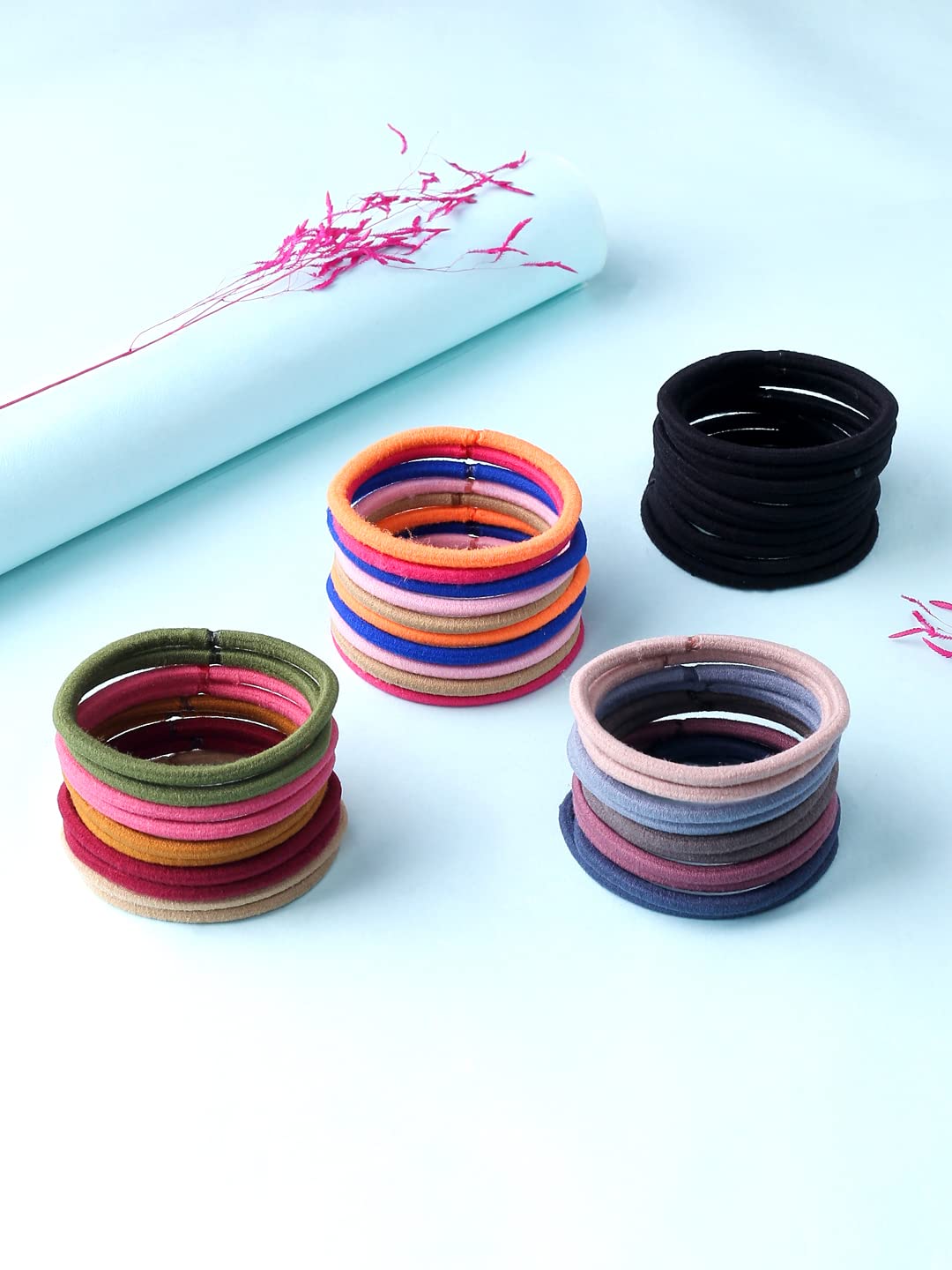 - Set of 40 multicolor Hair Ties Hair Bands. An Rubber bands is used to keep the hair back, off the face. Wear various trendy hairstyles with these trendy Rubberbands.Small & lightweight Rubberbands for girls , beautiful and cute Ponytail Holders for girls, durable and unfading for long times wearing.For Baby Girls Teens Toddlers, Assorted Styles For Toddlers.
