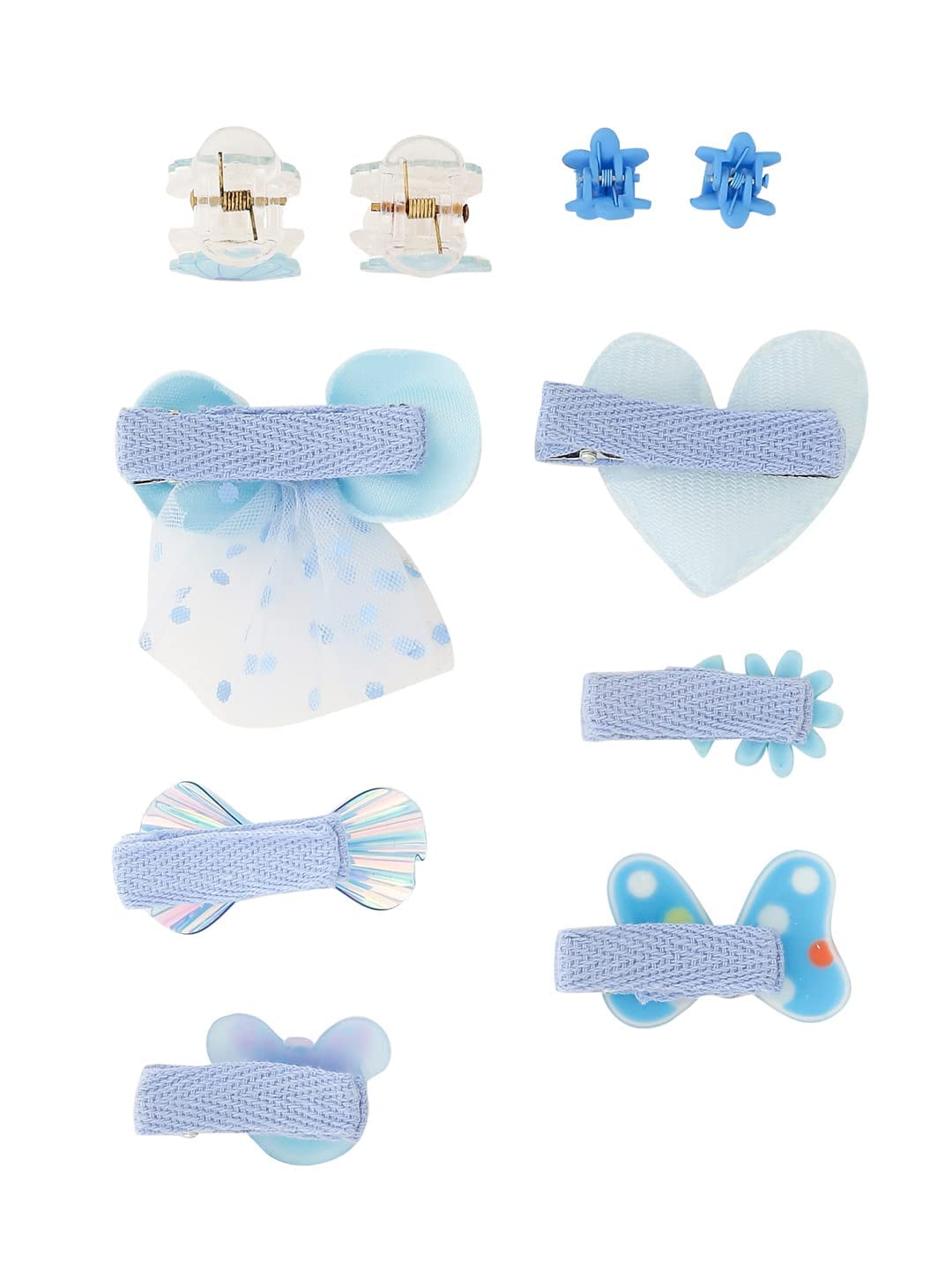 Melbees by Yellow Chimes Kids Hair Accessories for Girls Hair Accessories Combo Set Blue 10 Pcs Baby Girl's Hair Clips Set Cute Ponytail Holder Claw Clip Bow Clips For Girls Assortment Gift set for Kids Teens Toddlers