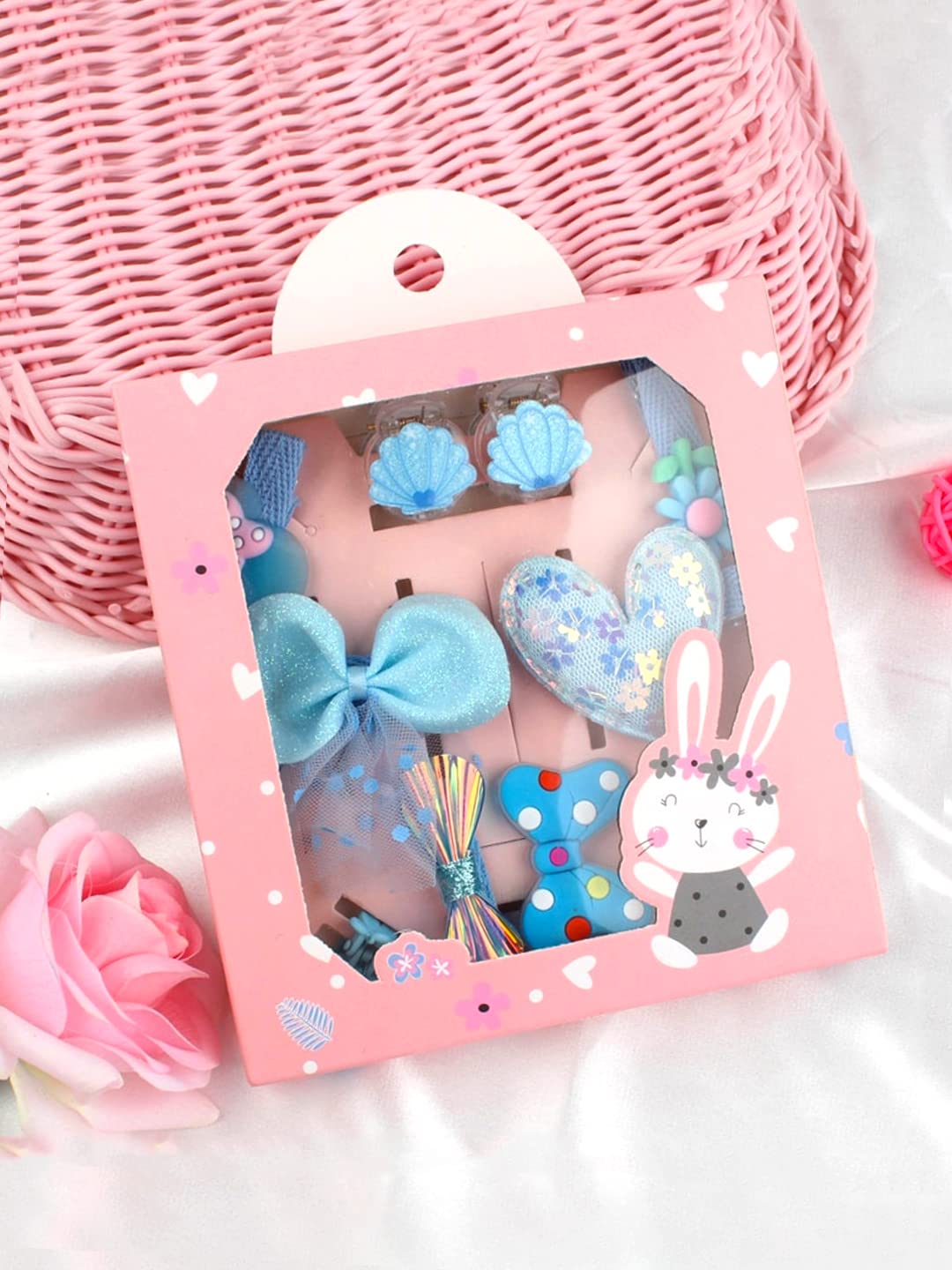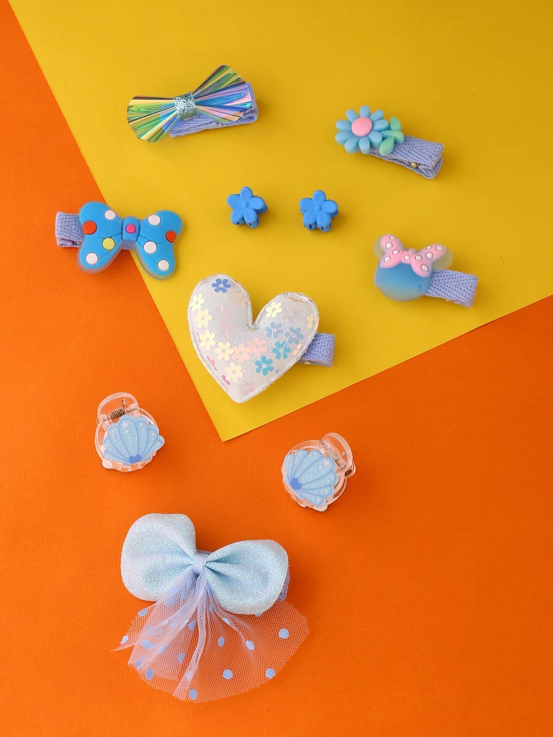 - 10 Assorted Pieces: A variety of adorable hair accessories including cute ponytail holders, claw clips, and charming bow clips.