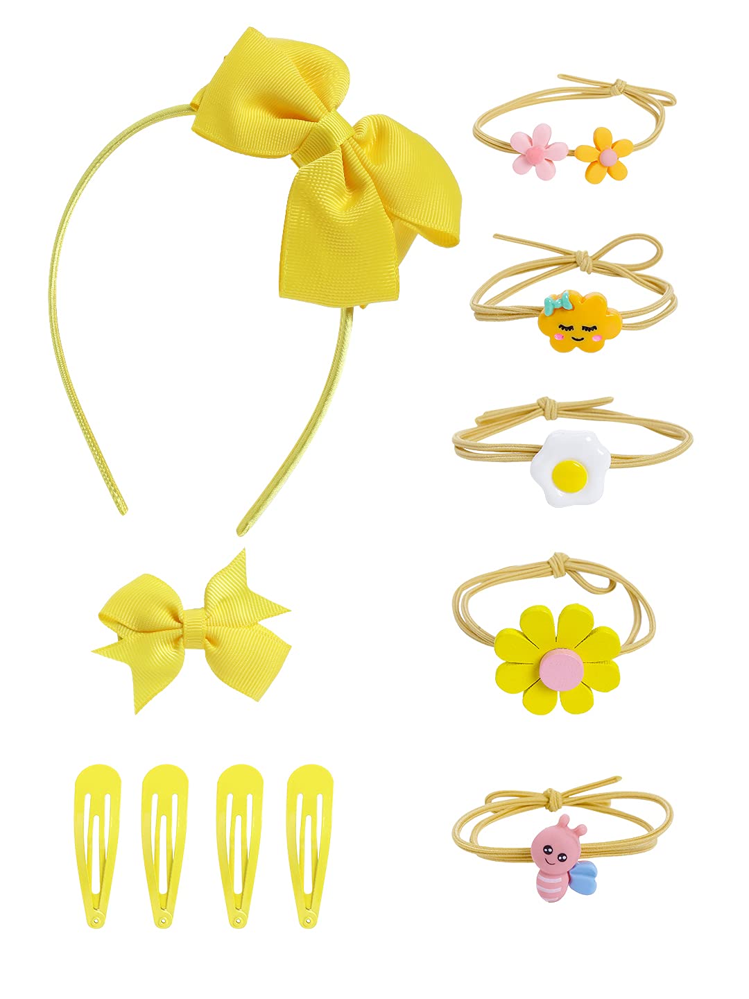 Melbees by Set of Hair Accessories Set of Bow Hair Band, 1 PCS Bow Hair Clips, 4 PCS Tic-Tac Hair Clips and 5 PCS Rubber Bands Pony Holders for Girls and Kids, Meduim (YCHASET-KD001-YL)