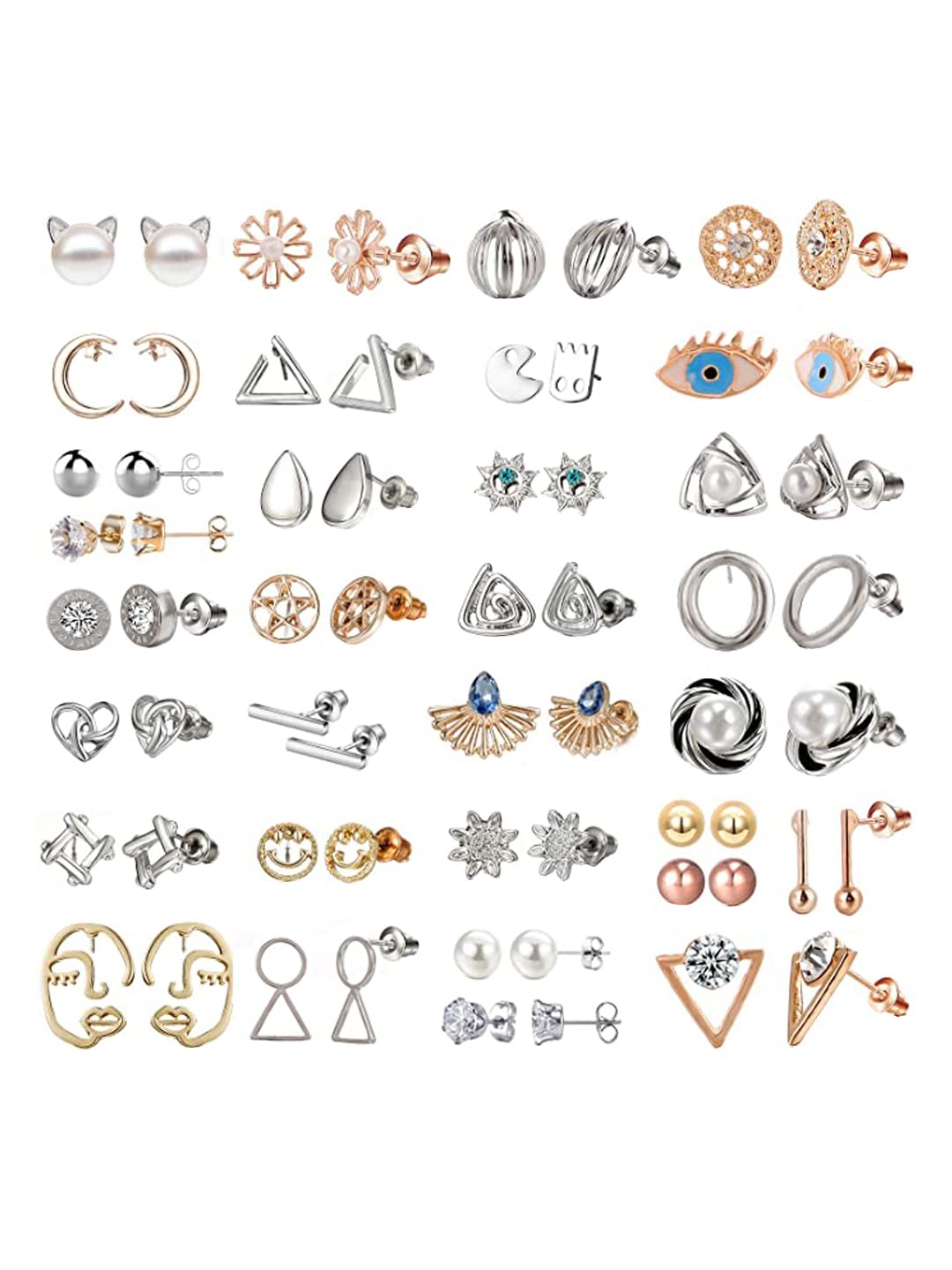 Stud Earrings for Women Combo of 28 Pairs Studs Earrings Gold/Silver Plated Causal Wear Stud Earrings Set for Women and Girls.