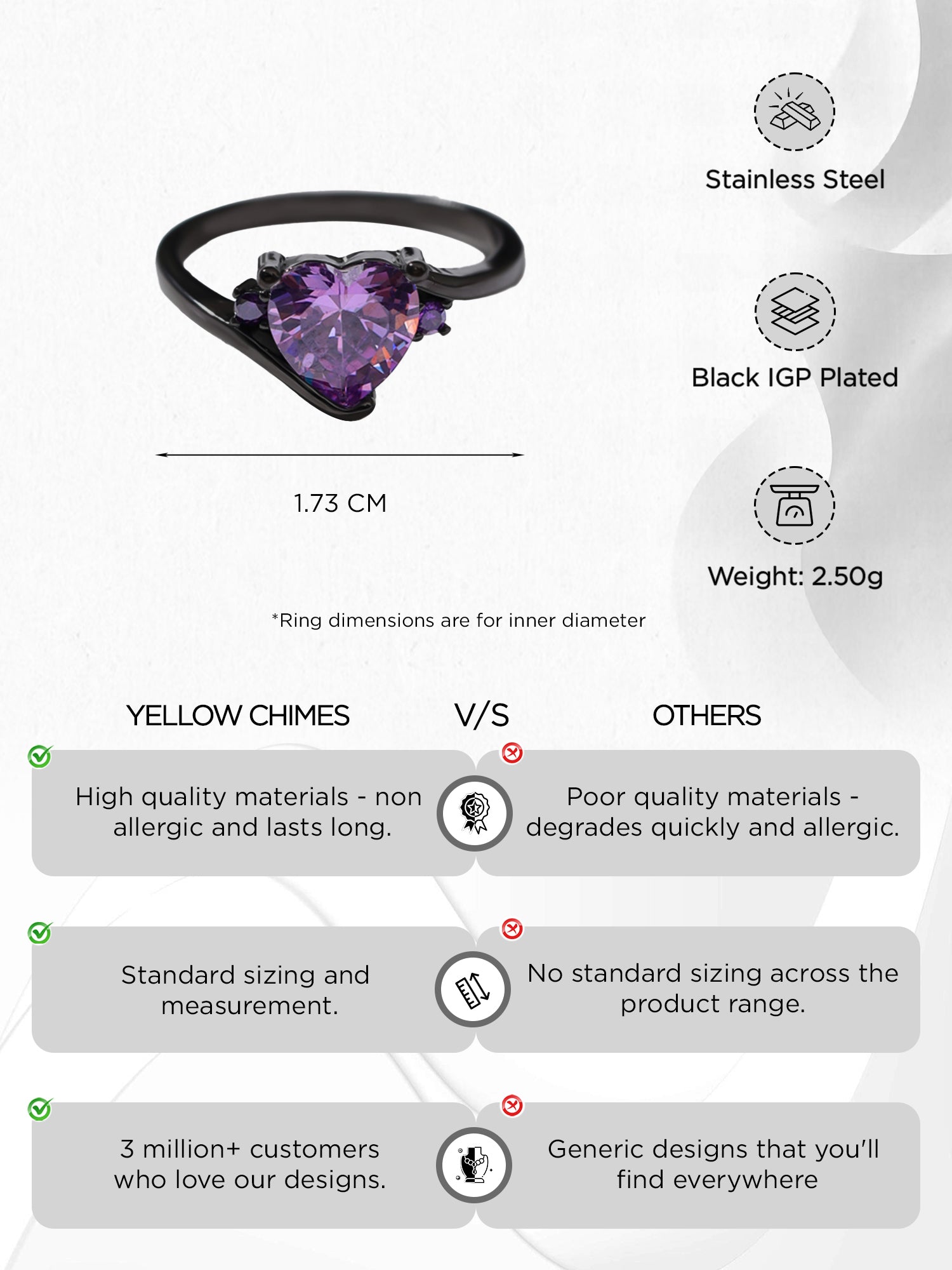 Introducing the Purple Heart Shaped Crystal Ring by Yellow Chimes. This stunning ring is crafted with high-quality crystal and brass material, expertly plated with rhodium for a premium finish and lasting durability. The exquisite purple heart-shaped design makes it an ideal gift for girls or a special woman in your life, perfect for birthdays, anniversaries, or any memorable occasion. This adjustable ring fits comfortably with a base size of 7 and an inner circumference of 1.7 cm, ensuring a perfect fit for most. The elegant packaging adds a sophisticated touch to your purchase.