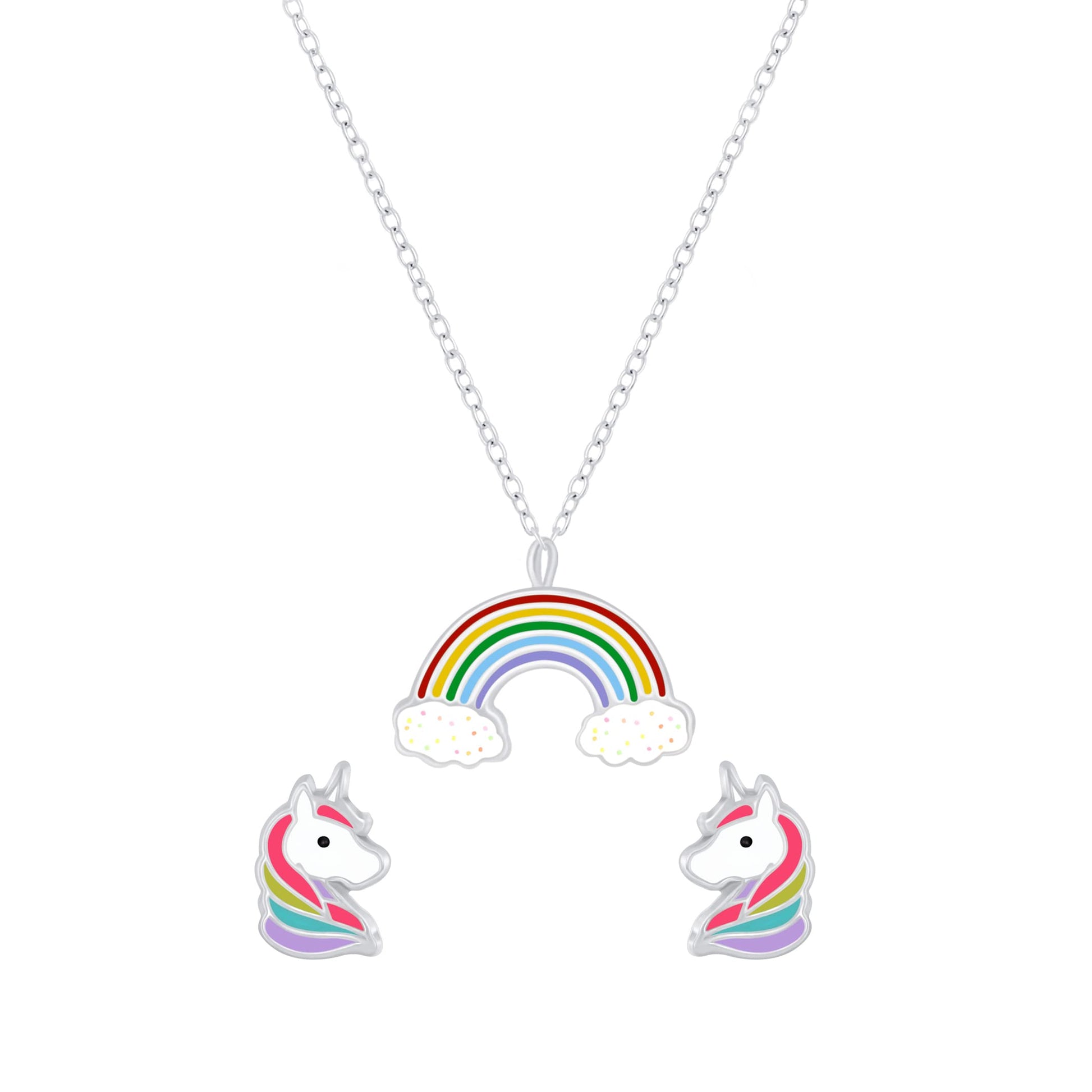 Introducing the exquisite 925 Sterling Silver Pendant Set from the Melbees Kids Collection. Designed specifically for girls and kids, this charming Rainbow Design pendant set is the ultimate birthday gift that combines elegance, fun, and timeless appeal.