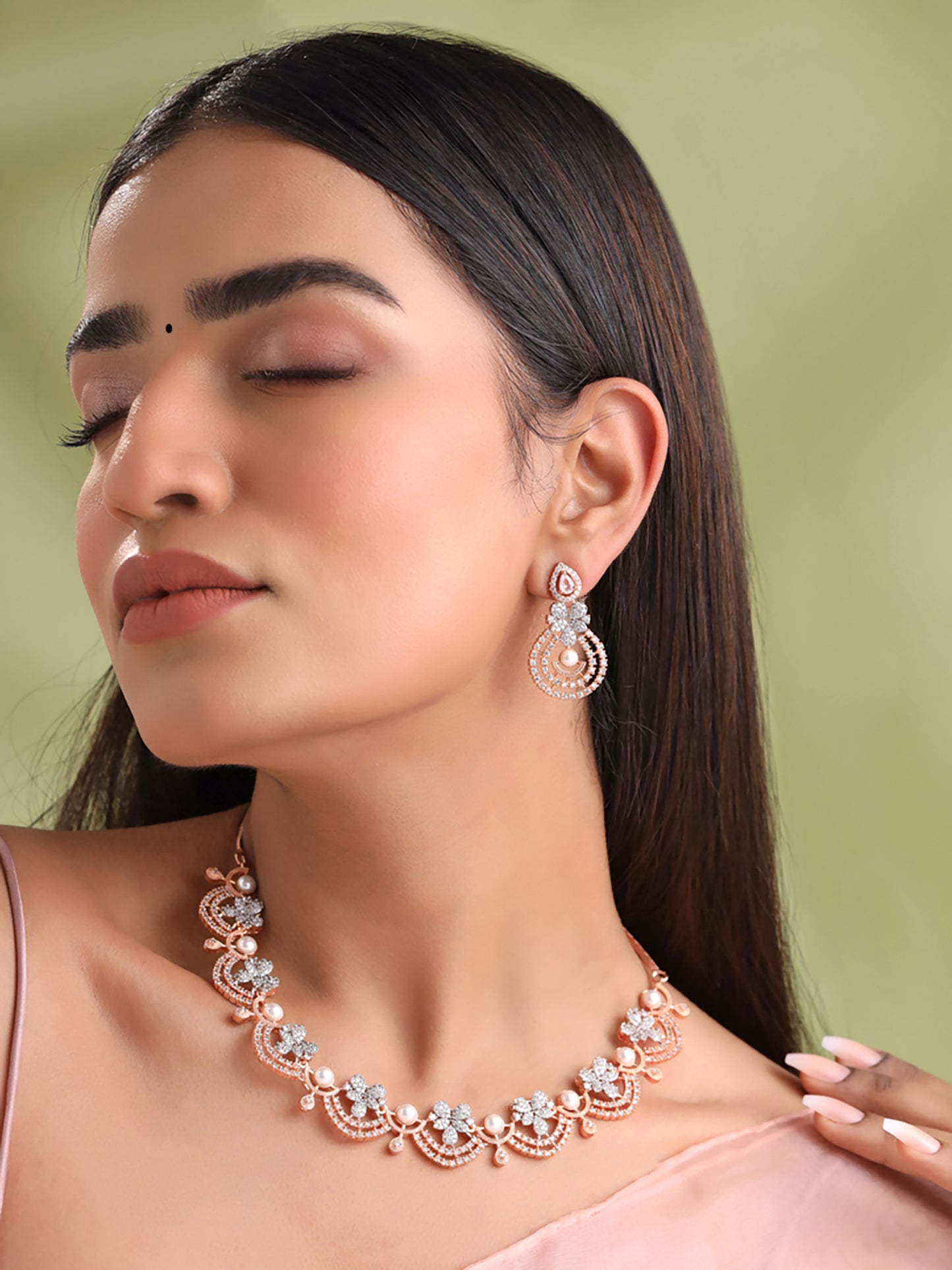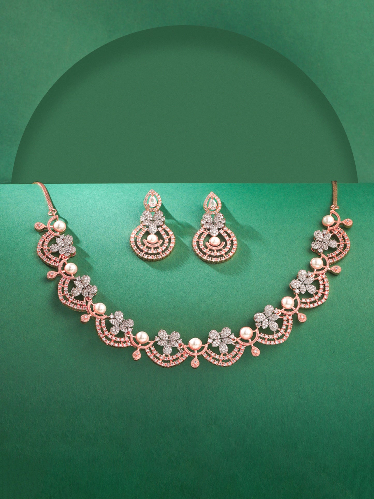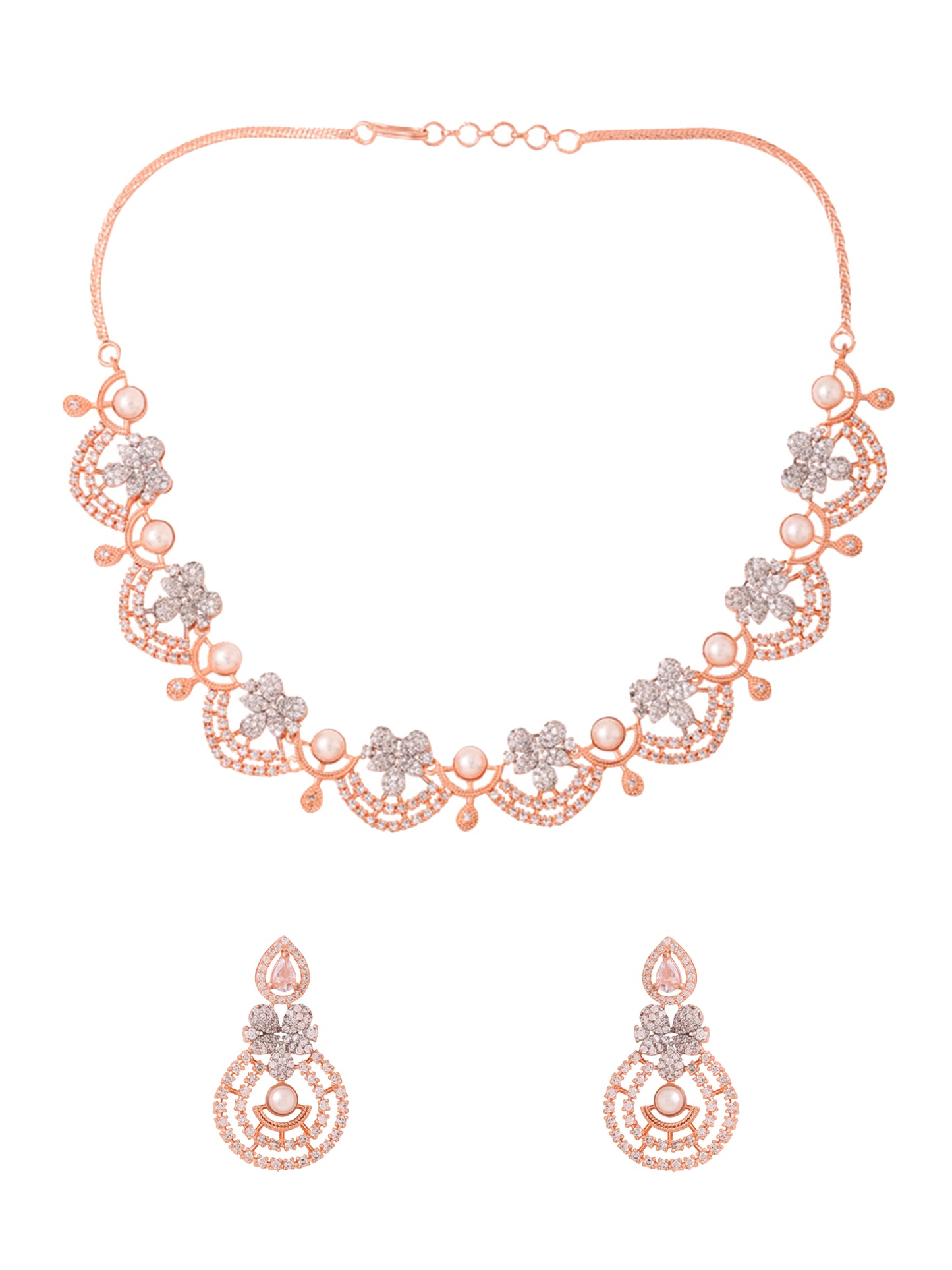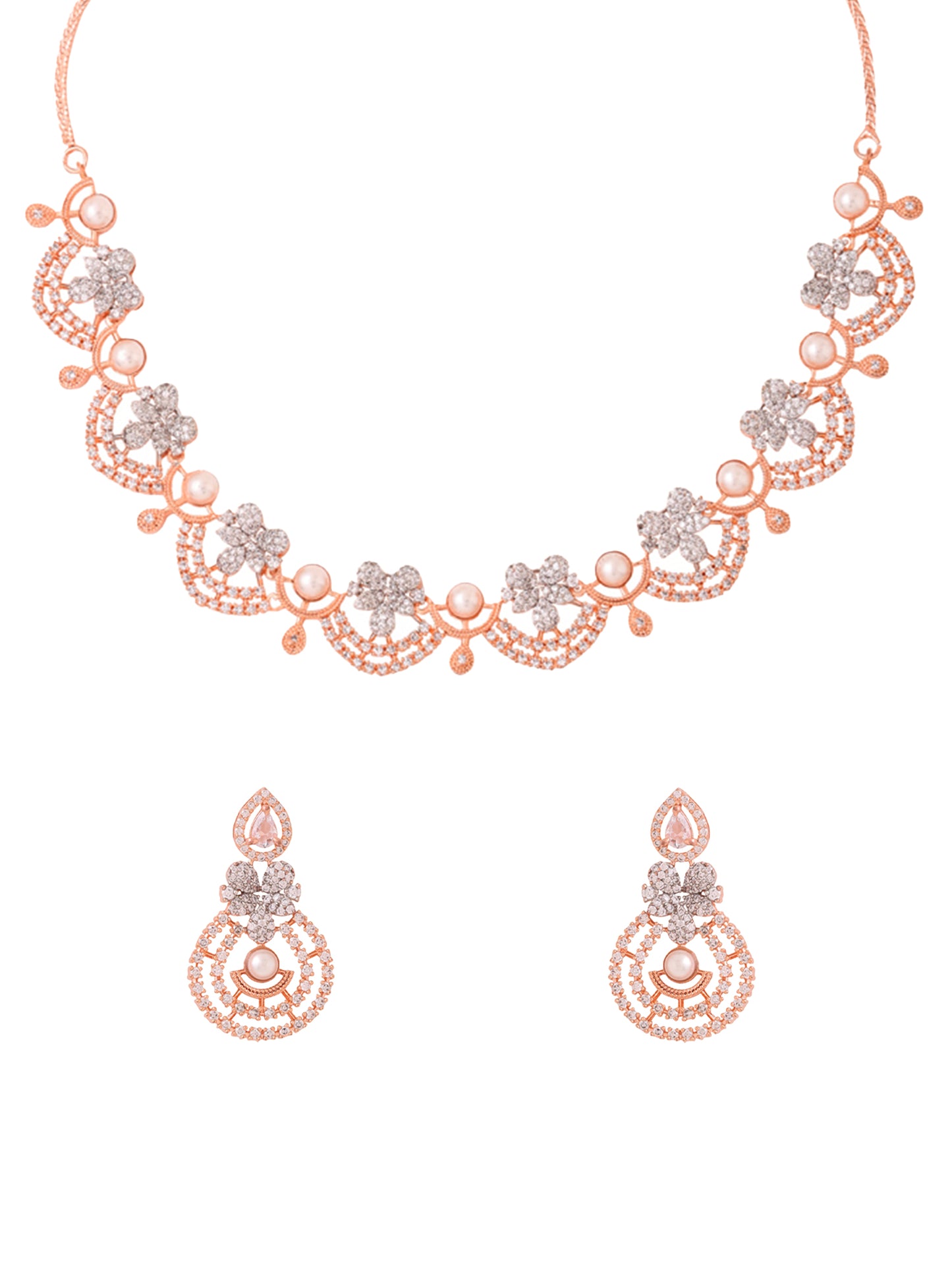 Whether it's a special date, an important celebration, or a casual outing, the Rosegold Jewellery Set is ideal for girls and women seeking to enhance their style with elegance. Radiate sophistication and receive compliments wherever you go with this exquisite set from Yellow Chimes.