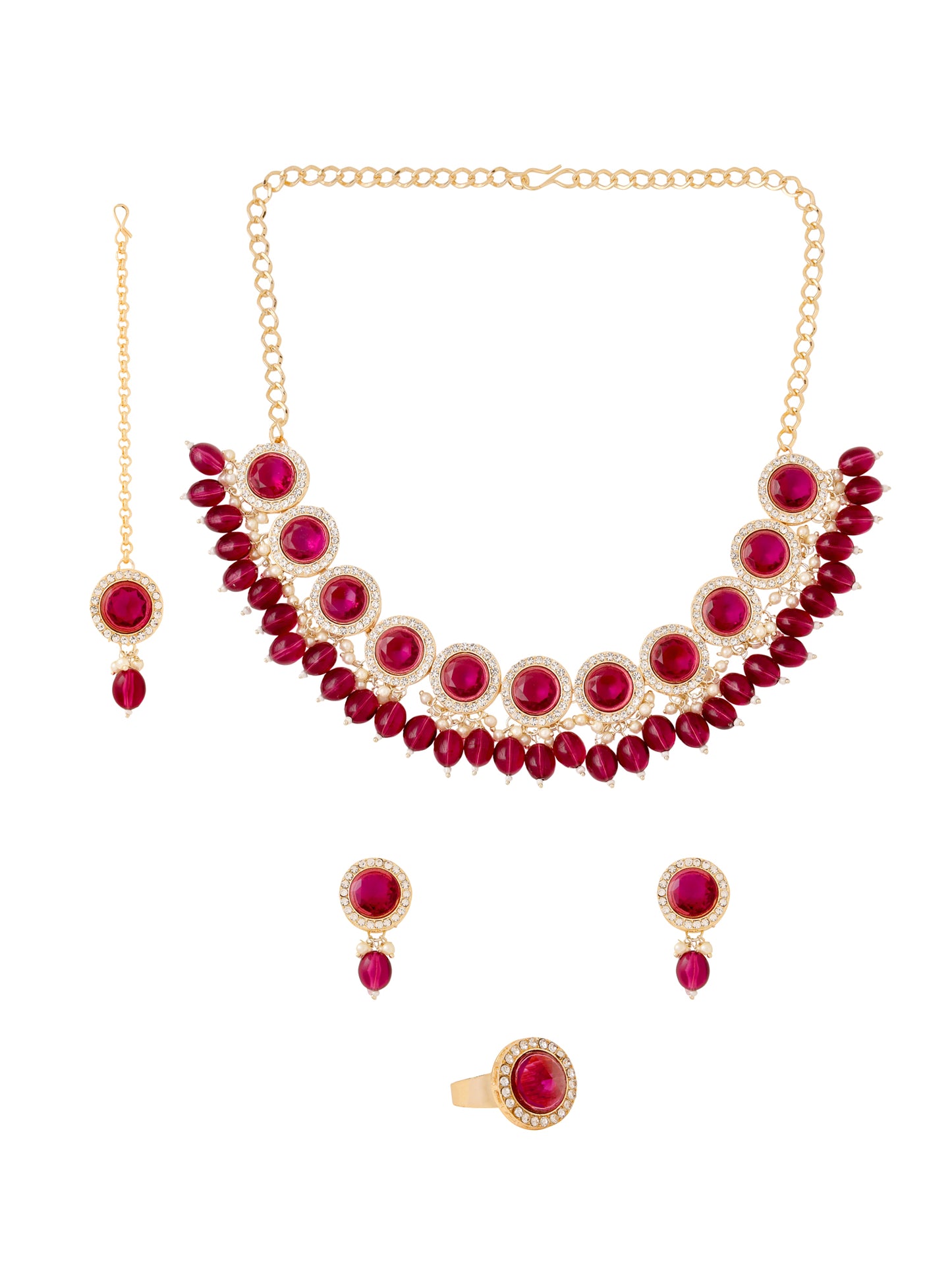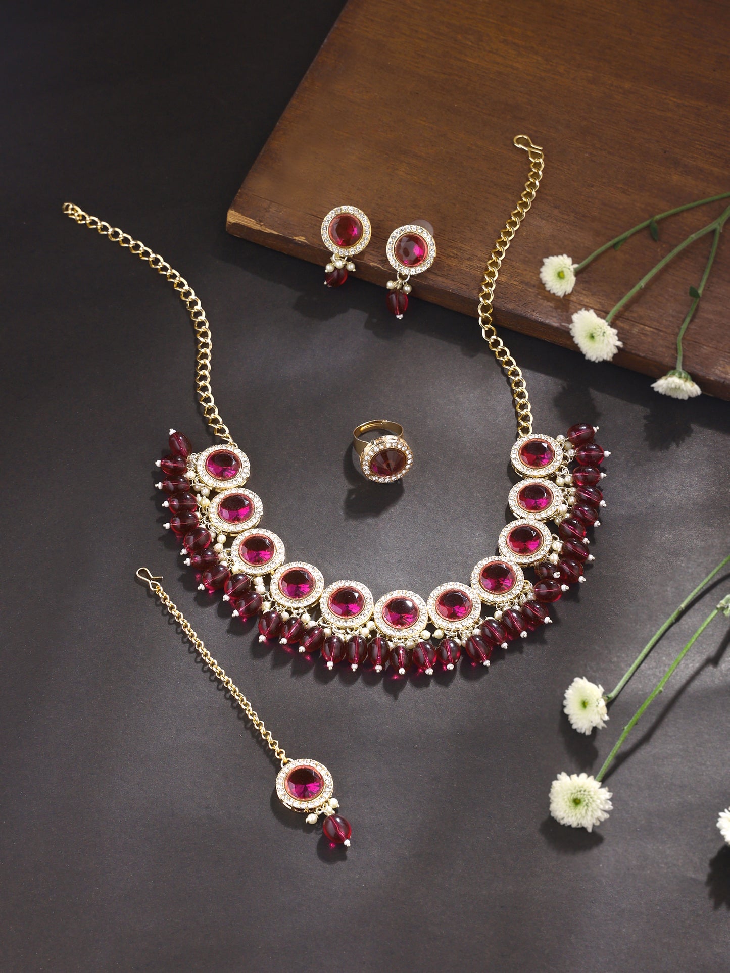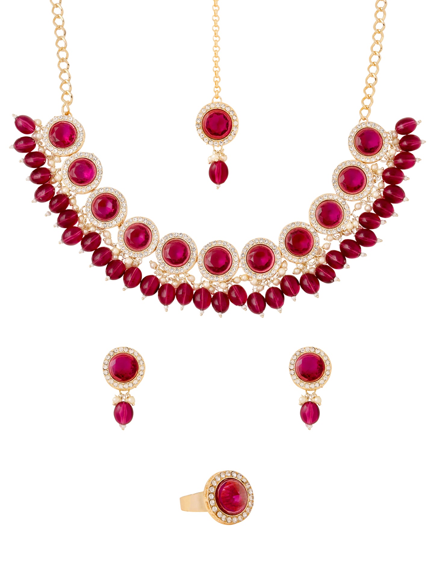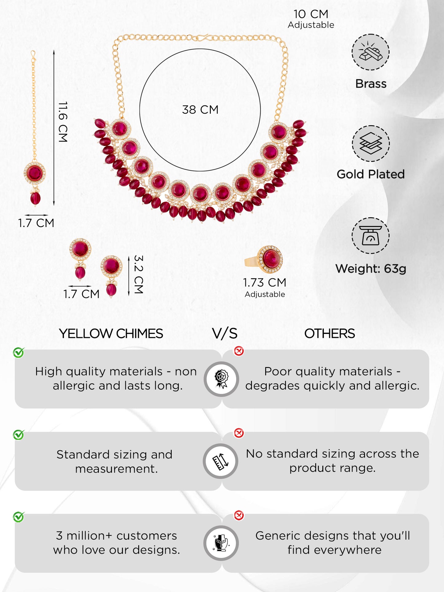 - SIZE DETAILS: Necklace Length - 38 CM | Width - 3.4 CM | Earrings Length - 3.2 CM | 1.7 CM | Ring Size Adjustable | Width - 1.7 CM | Maangtikka Length - 11.6 CM | 1.7 CM | Total Weight - 63 Grams.