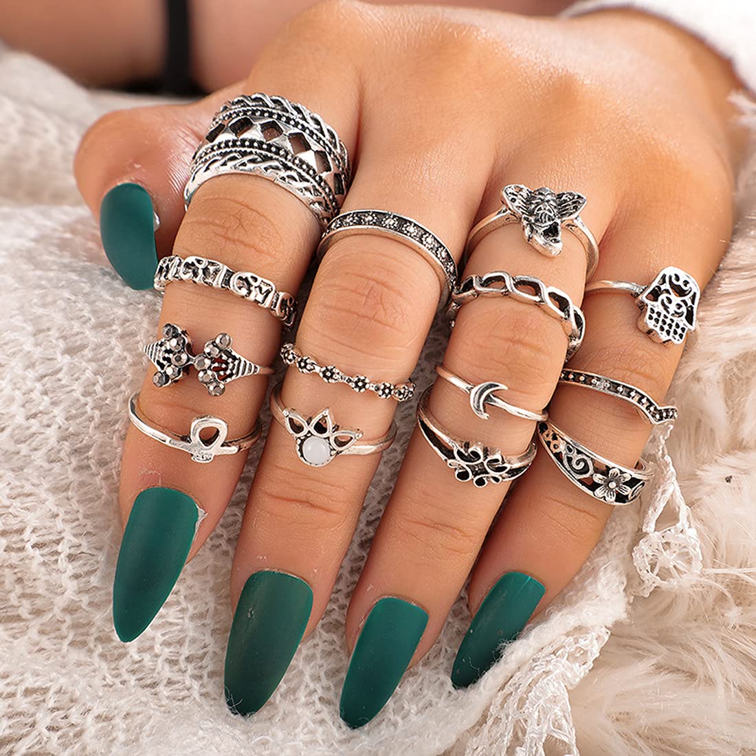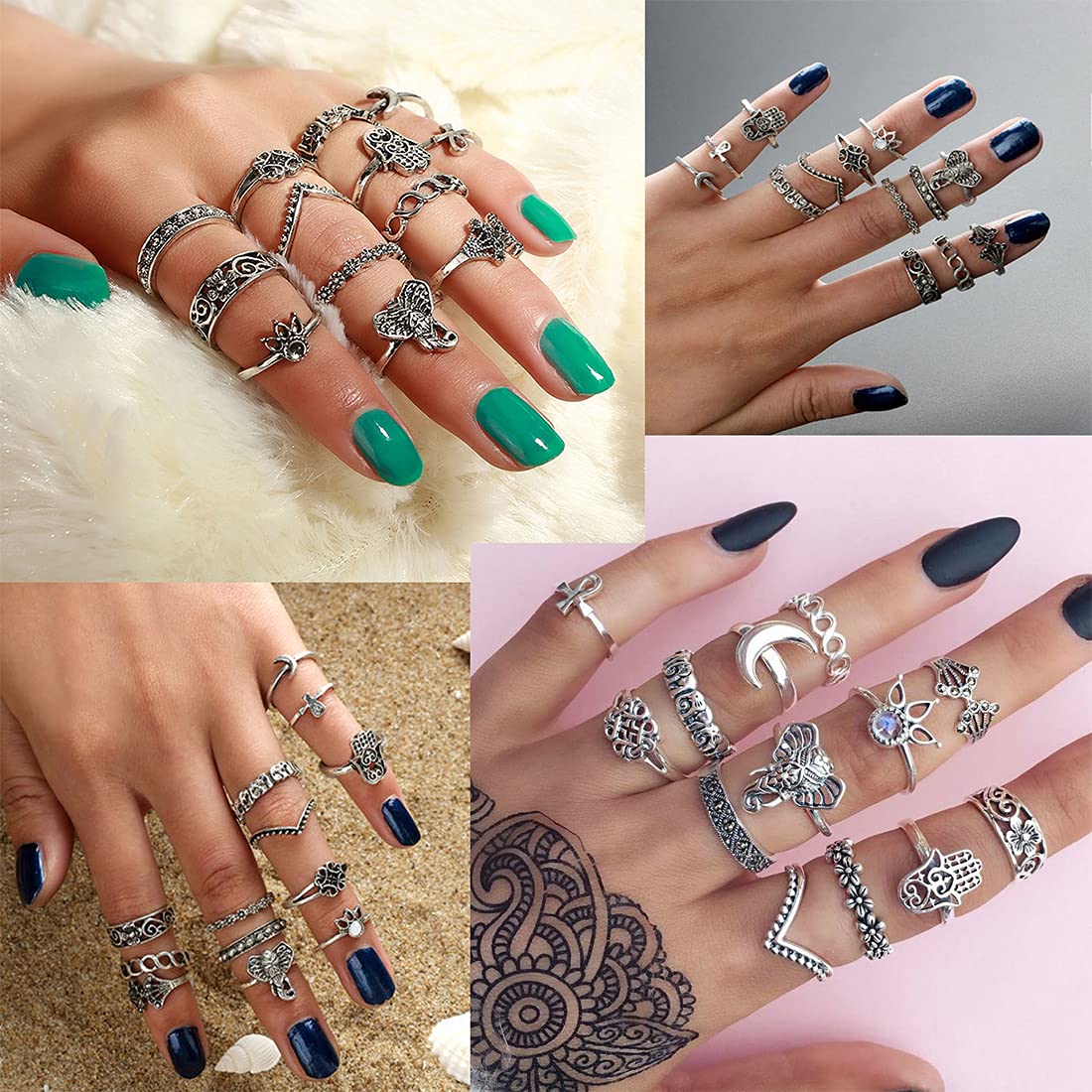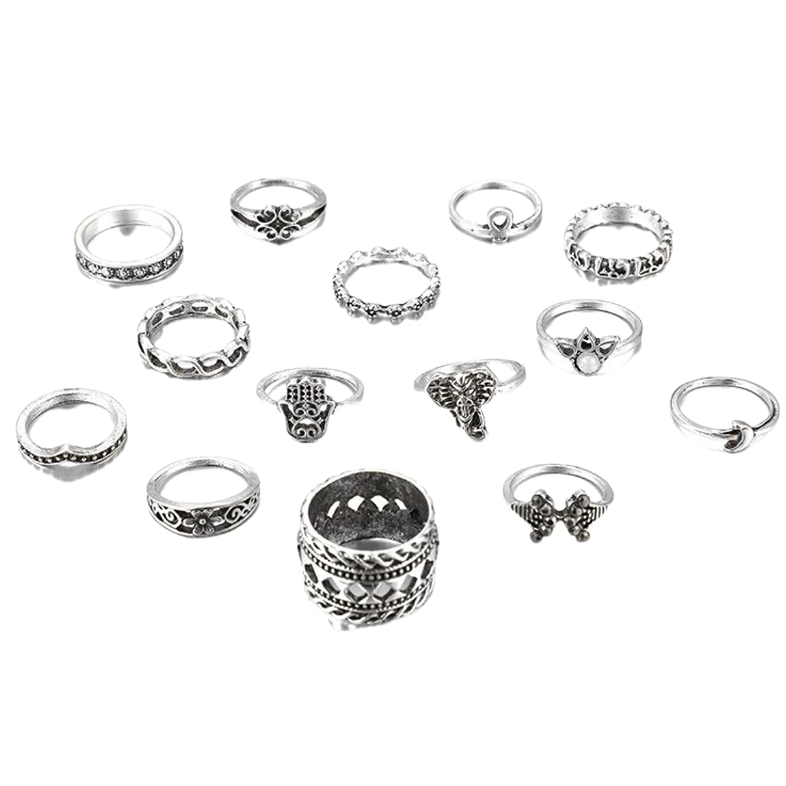- Vintage &Trendy Bohemian Vintage Style- combo of 15 pcs/set with Silver Plating, These Retro Vintage Rings ,make you more Charming and Eye-Catching Knuckle Rings Set.