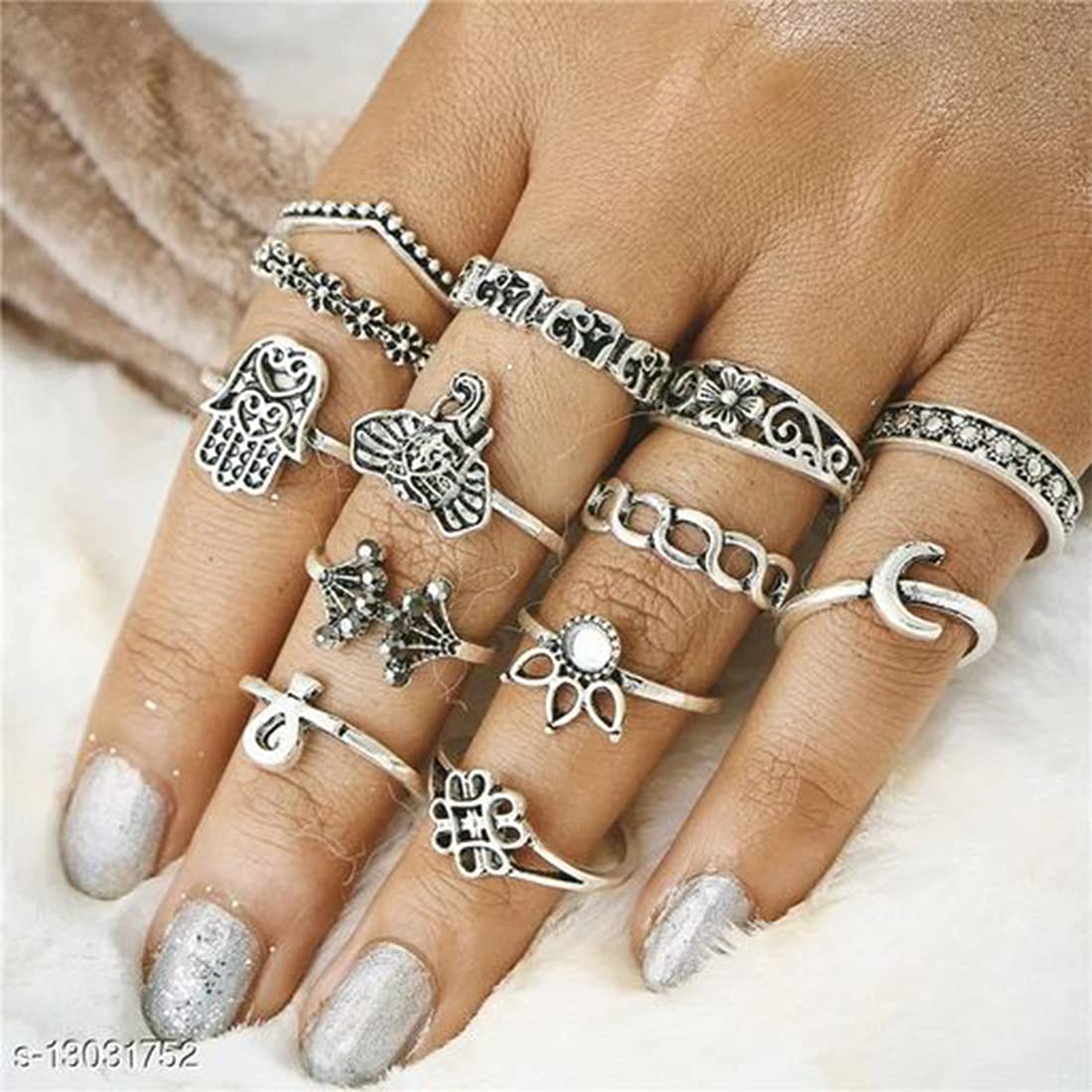 Yellow Chimes Rings for Women and Girls Fashion Aesthetic Ring Set Oxidised Silver Toned Aesthetic Rings Vintage Style Midi Finger 13 PCS Knuckle Rings Set | Birthday Gift For Girls & Women
