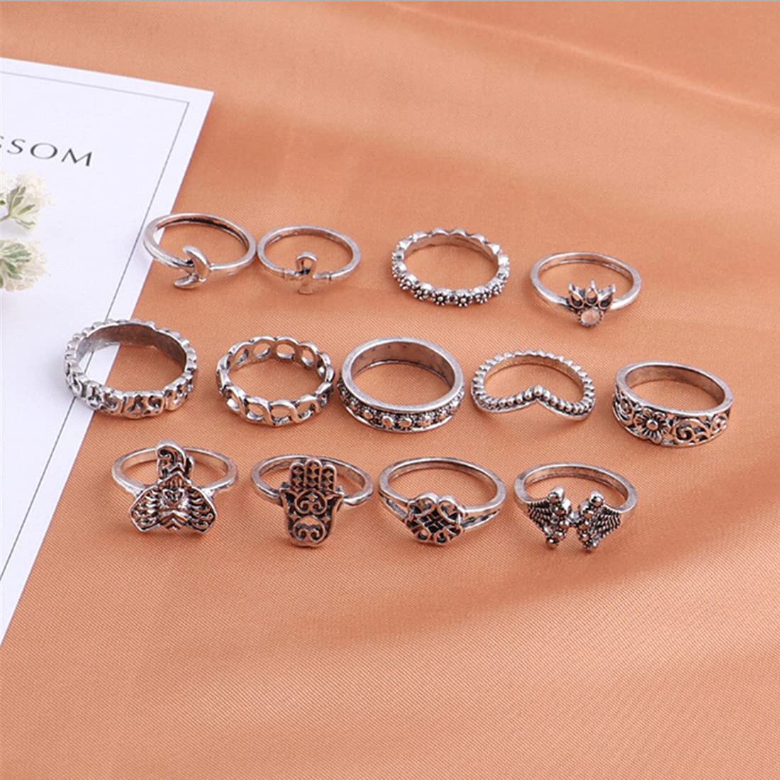 Rings for Women and Girls Fashion Aesthetic Ring Set Oxidised Silver Toned Aesthetic Rings Vintage Style Midi Finger 13 PCS Knuckle Rings Set | Birthday Gift For Girls & Women