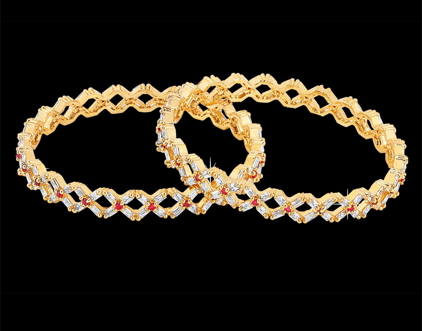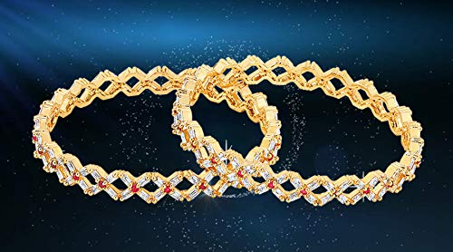 Yellow Chimes A5 Grade AD Crystal 18k Gold Plated American Diamond Designer 2 Pcs Traditional Bangles Set for Women