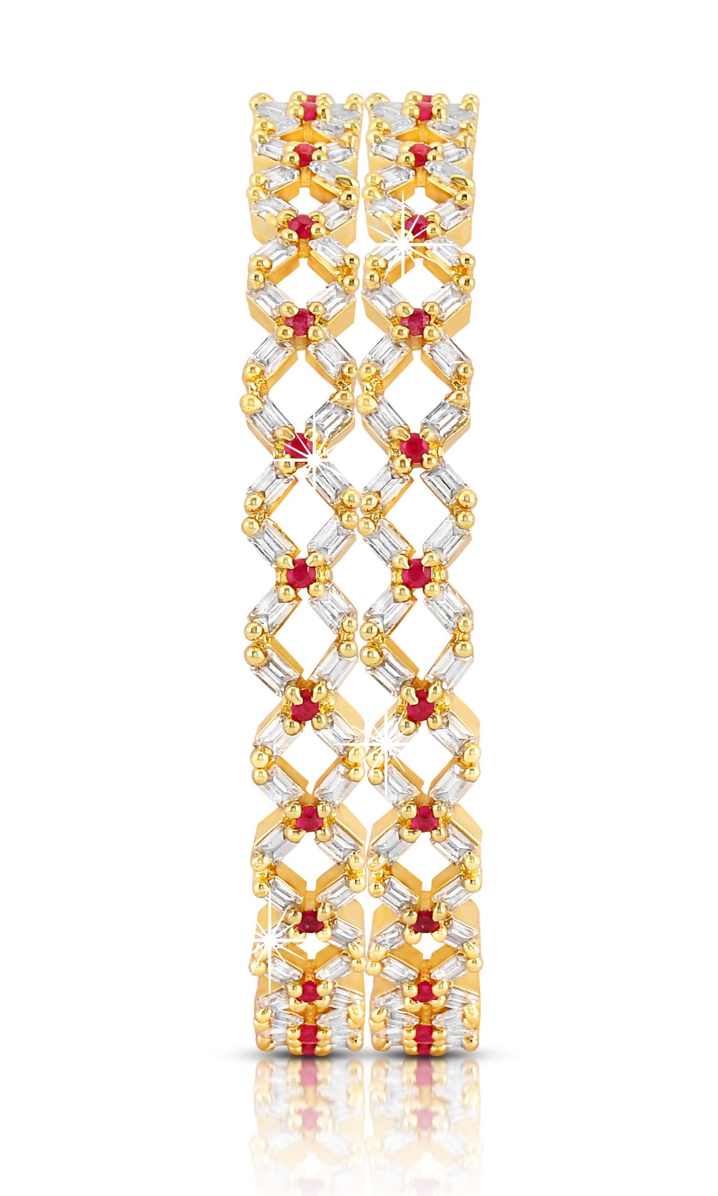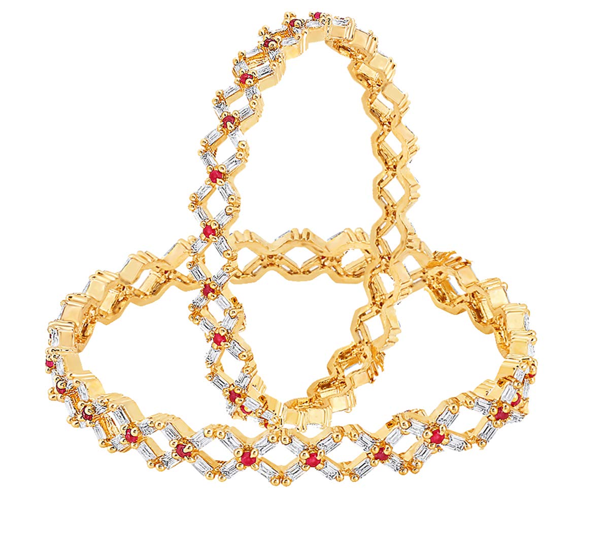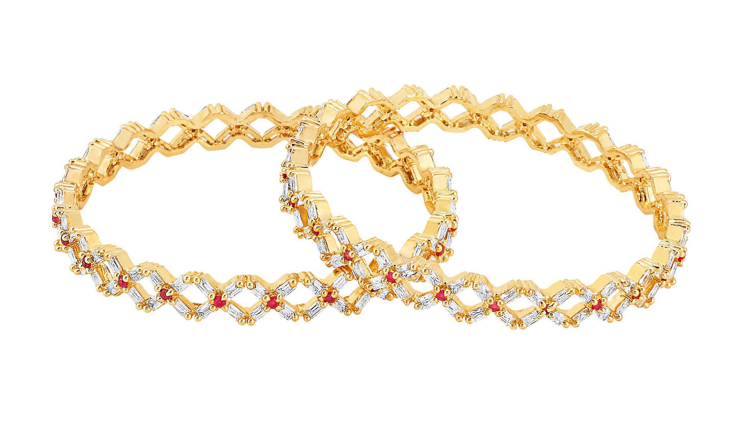 A5 Grade AD Crystal 18k Gold Plated American Diamond Designer 2 Pcs Traditional Bangles Set for Women