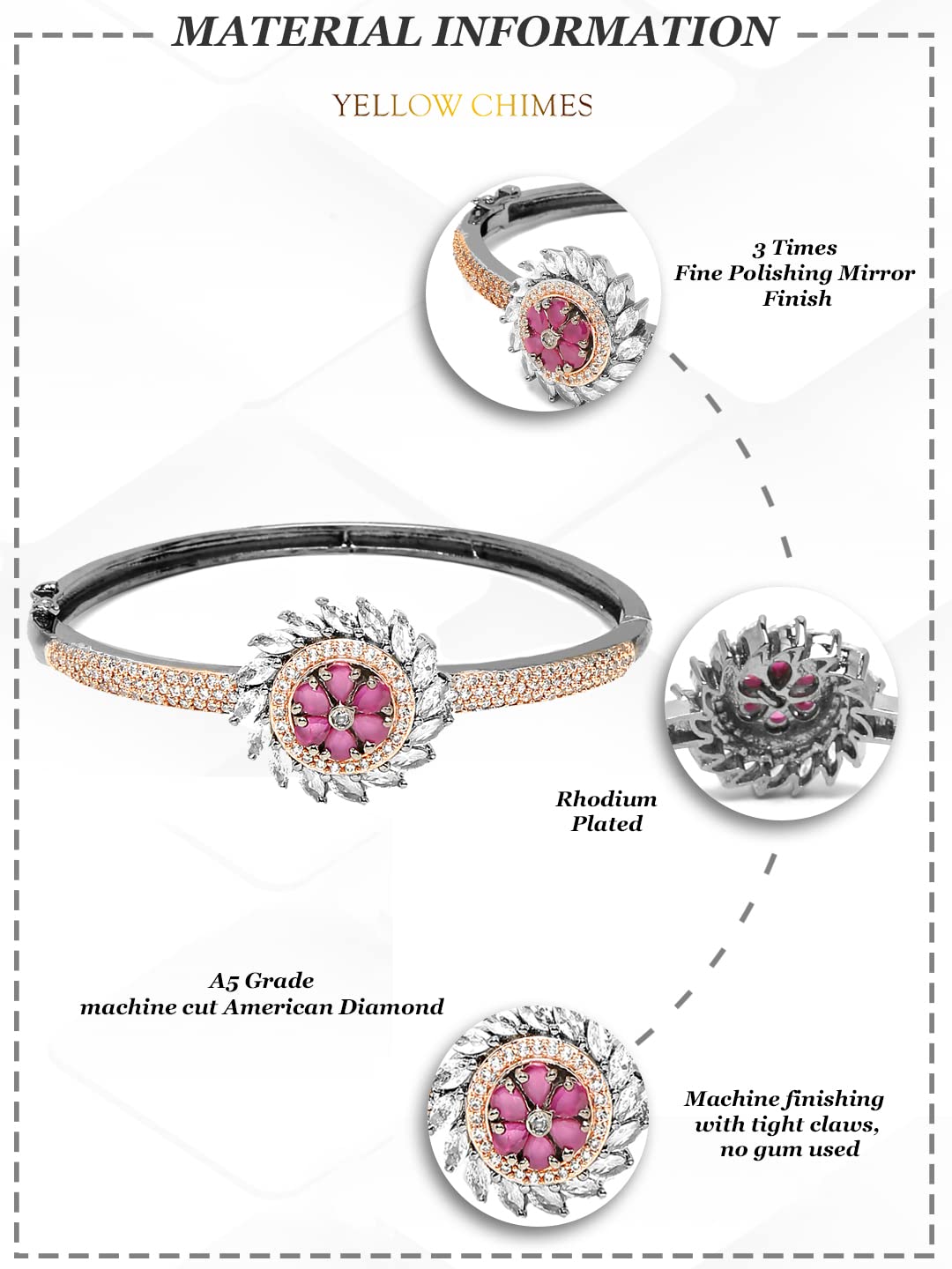 Yellow Chimes AD Bracelet for Women Pink American Diamond Bangle Bracelet High Grade Authentic AD Jewellery Bangle Style Bracelet for Women and Girls