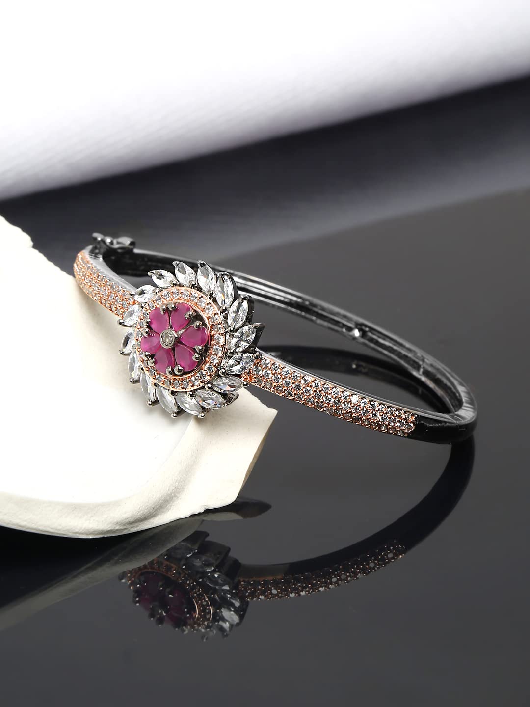 AD Bracelet for Women Pink American Diamond Bangle Bracelet High Grade Authentic AD Jewellery Bangle Style Bracelet for Women and Girls