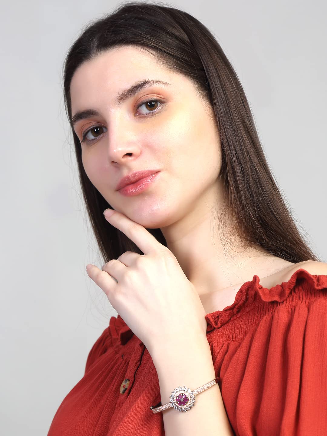 - Beatiful & Trendy: These rhodium-plated AD-studded bangle-style bracelet is designed and crafted with perfection. Very feminine, this must-have design can be worn on any occasion to boost up your style factor and enhance the ultra beauty factor. Indian, or Western, this gives a glamorous looks.