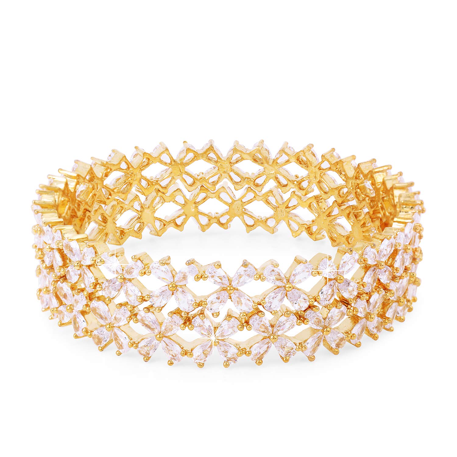 American Diamond Bangles Set for Women 2 Pcs 18k Gold Plated High Grade Authentic White AD Jewellery Bangles Set for Women and Girls