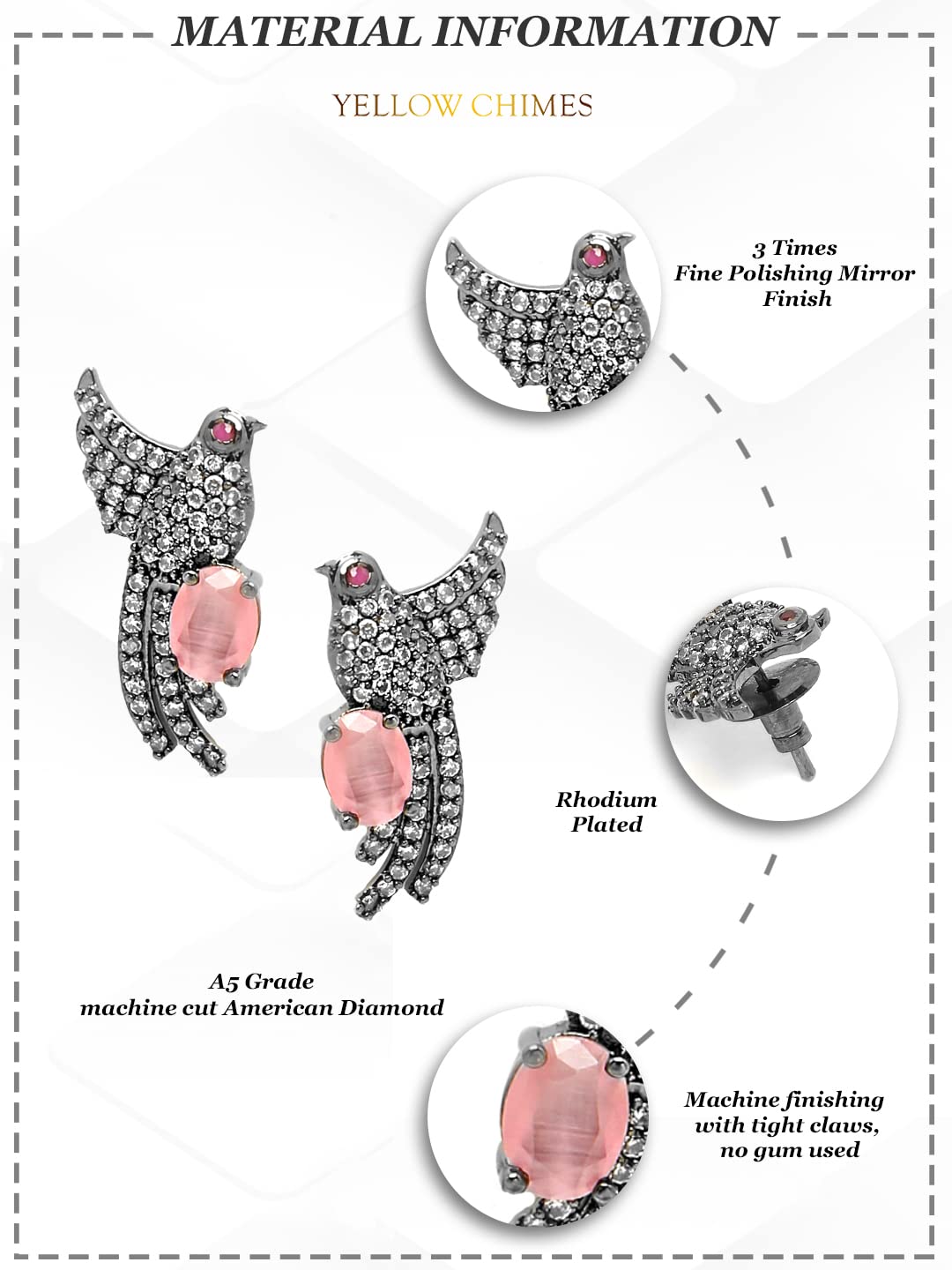 Yellow Chimes American Diamond Earrings for Women Rhodium-Plated Black AD-Studded Bird Design Stud Earrings for Women and Girls