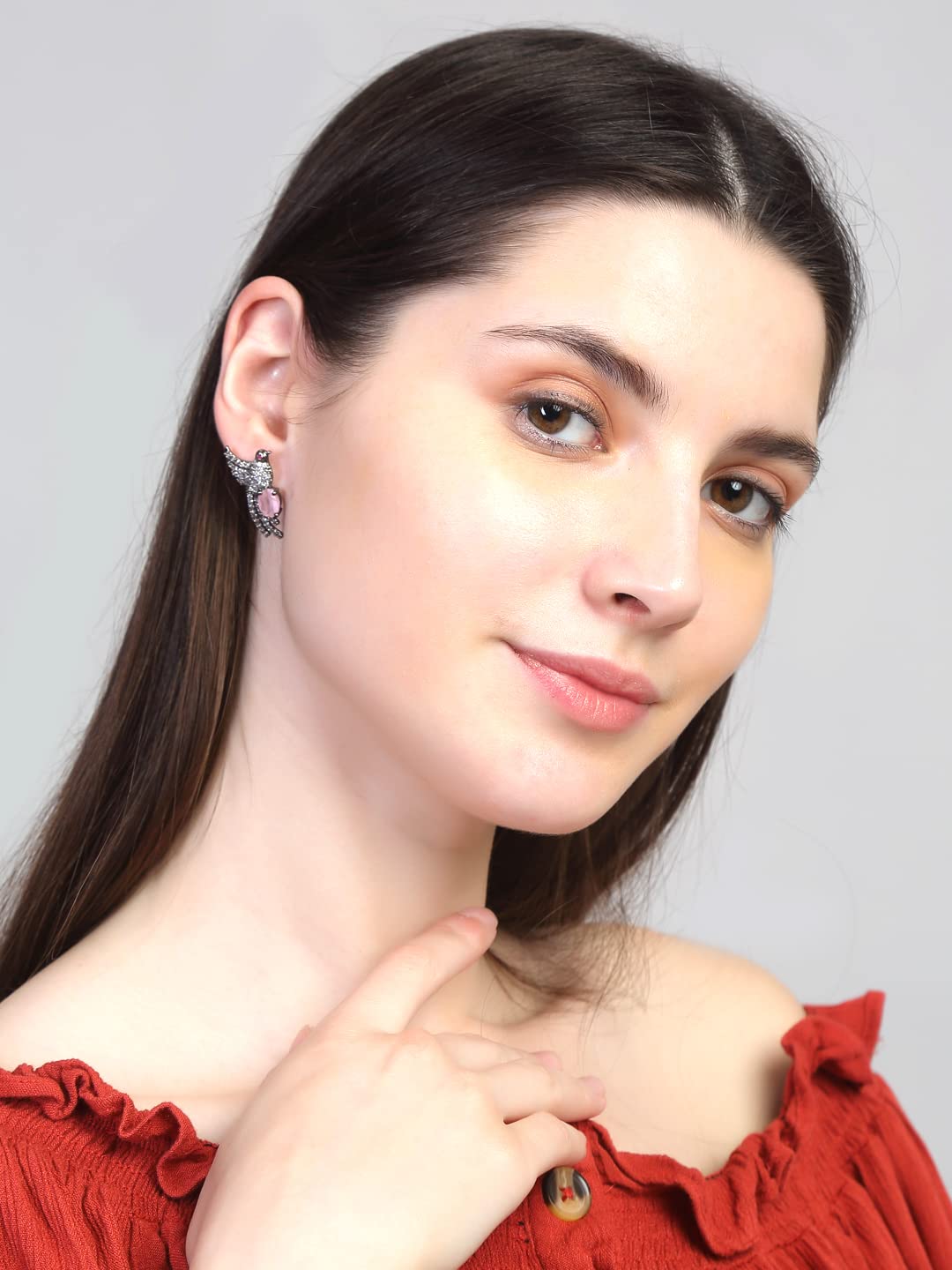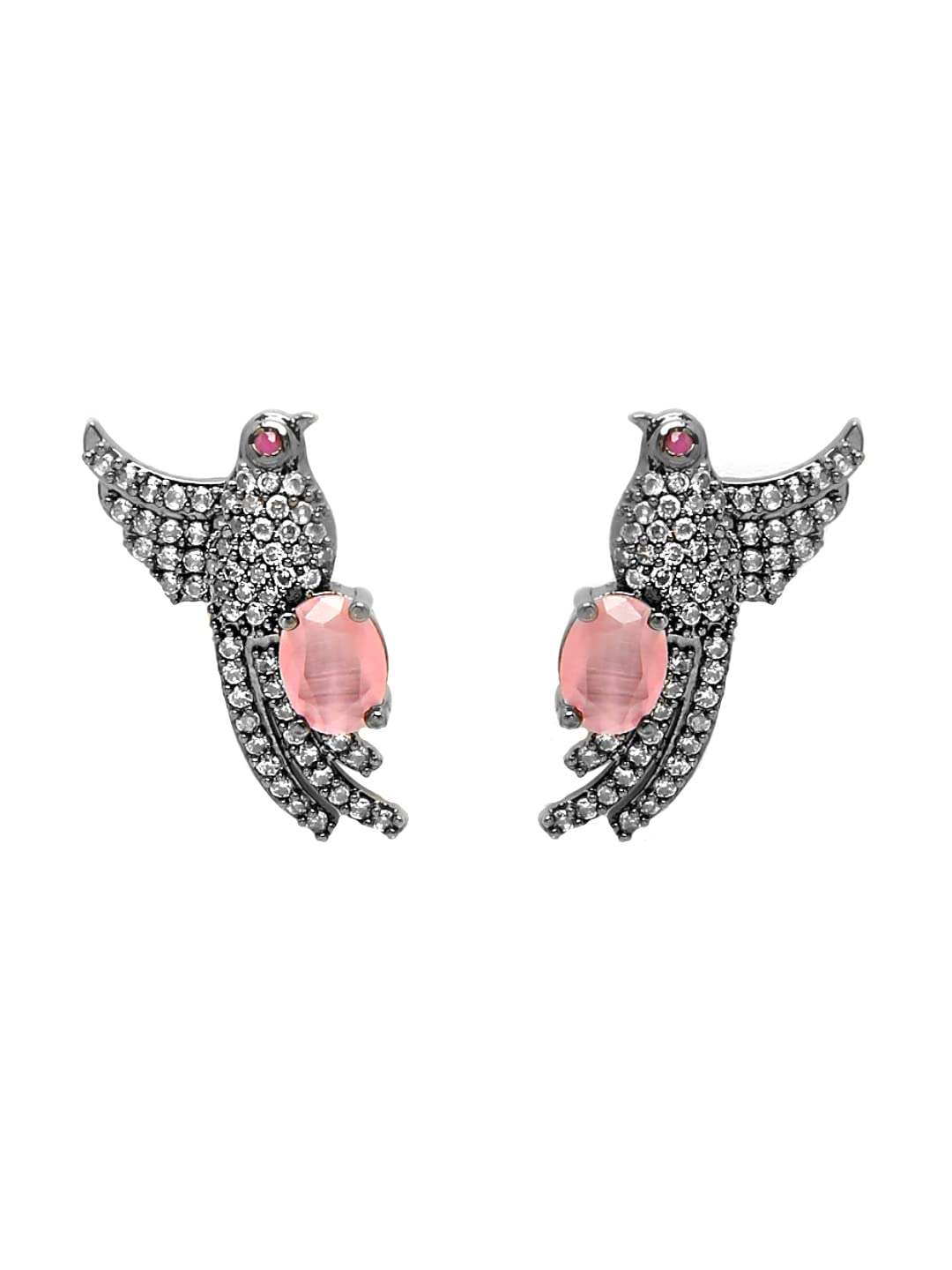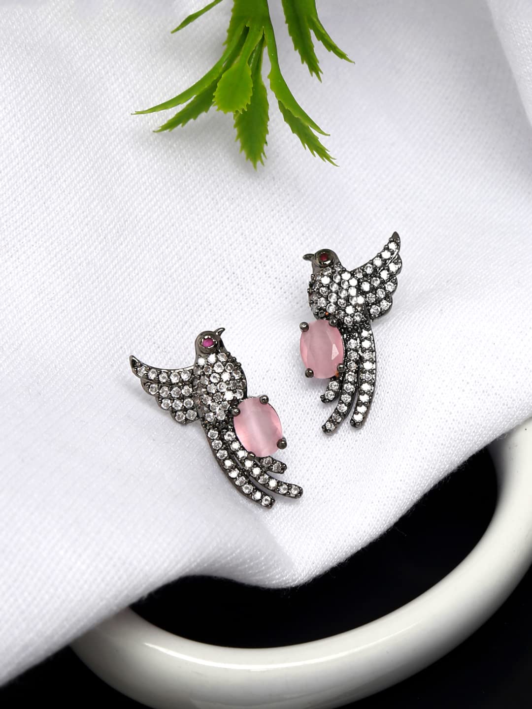 American Diamond Earrings for Women Rhodium-Plated Black AD-Studded Bird Design Stud Earrings for Women and Girls