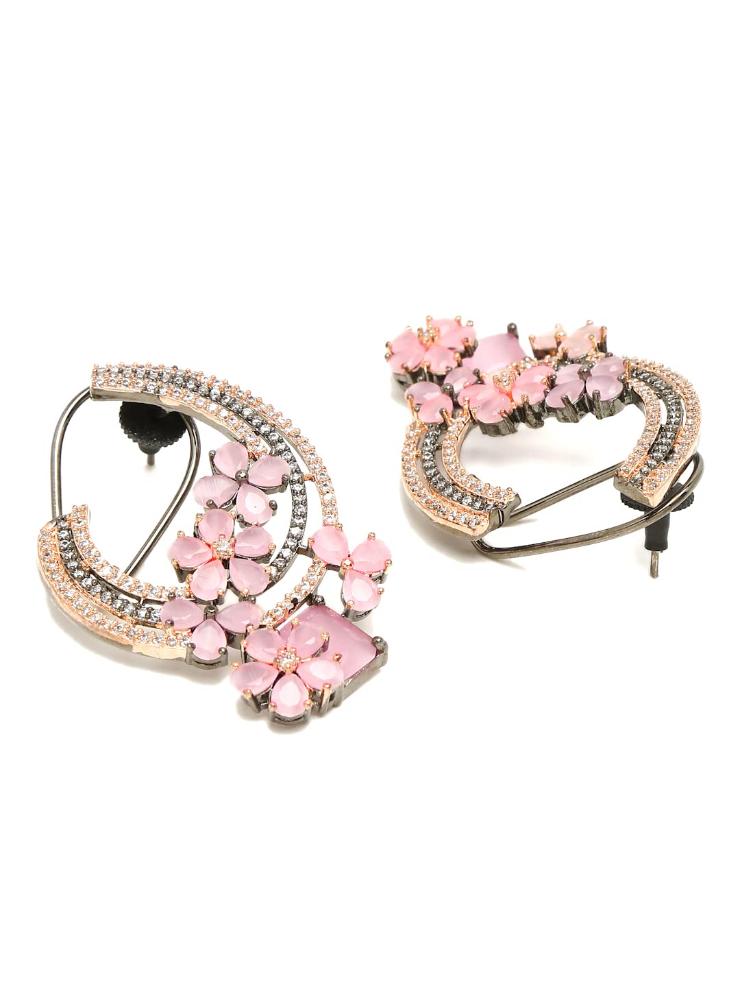 American Diamond Earrings for Women Rhodium-Plated Pink AD-Studded Floral Stud Earrings For Women and Girls
