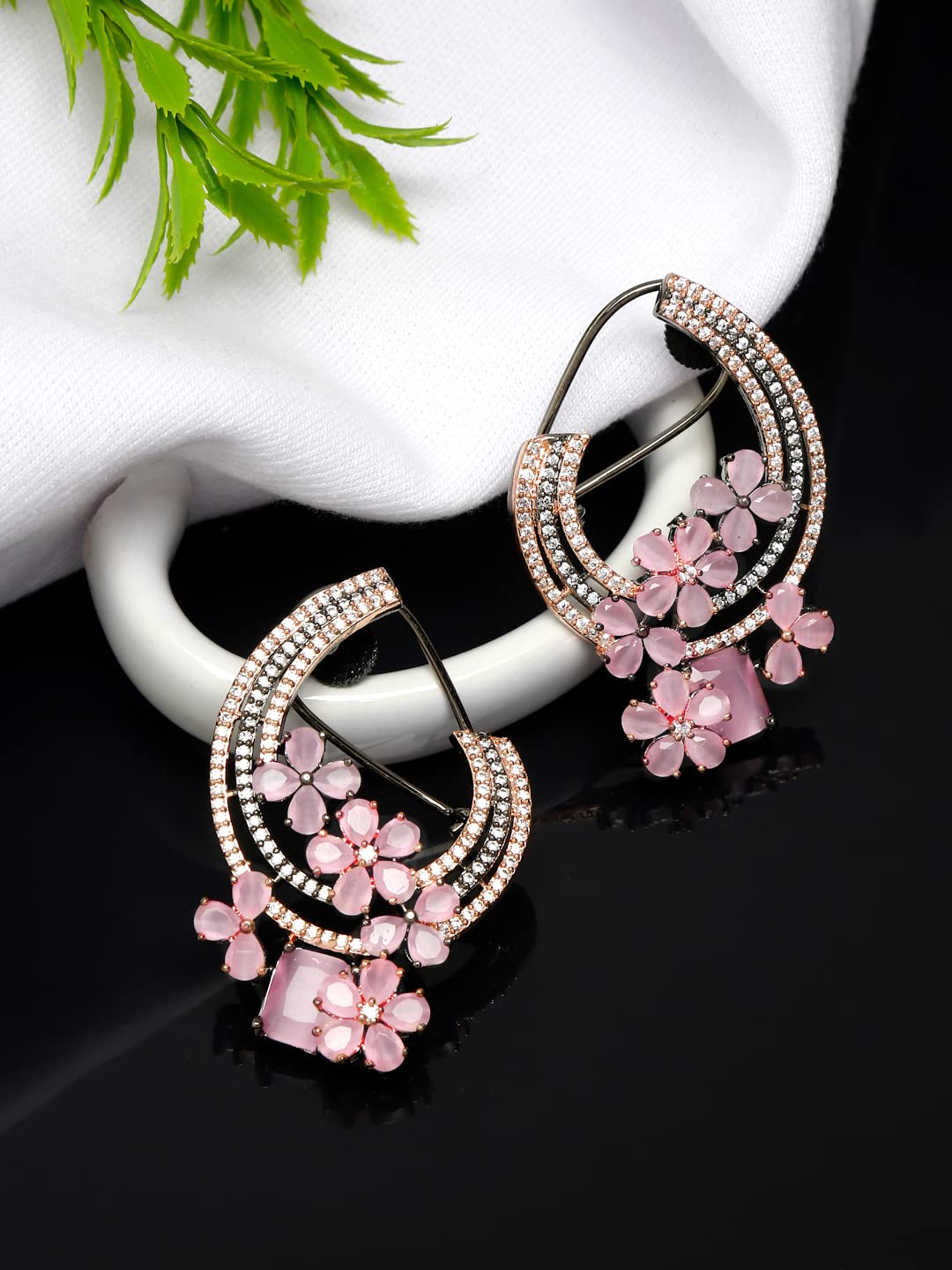 - Beatiful & Trendy: These rhodium-plated AD-studded flower earrings is designed and crafted with perfection. Very feminine, this must-have design can be worn on any occasion to boost up your style factor and enhance the ultra beauty factor. Indian, or Western, this gives a glamorous looks.