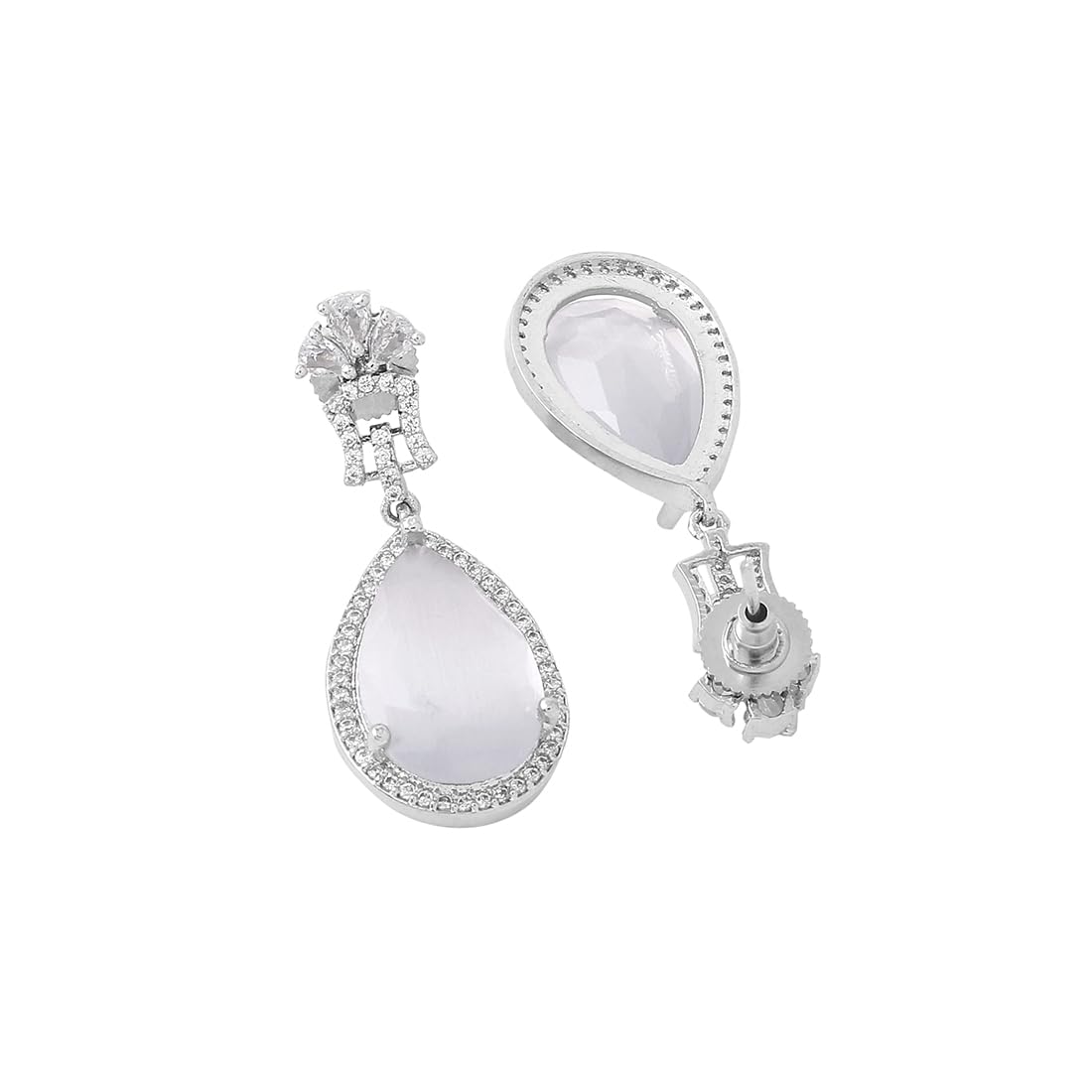 Introducing the American Diamond Jewellery Set by Yellow Chimes, designed to make every woman feel special. This beautiful set features a stunning necklace with a length of 46 cm (including adjustable length) and earrings measuring 4.3 cm, all crafted from high-quality brass with a shimmering silver tone. Weighing just 43.27 grams, this jewellery set is both lightweight and easy to wear for any occasion. The elegant packaging ensures that your favourite piece arrives in perfect condition, making it an ideal gift for birthdays, anniversaries, and special celebrations.