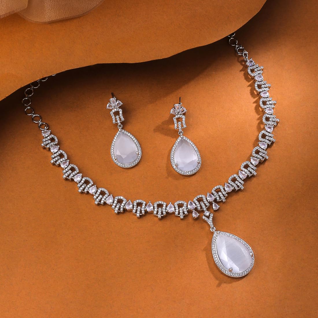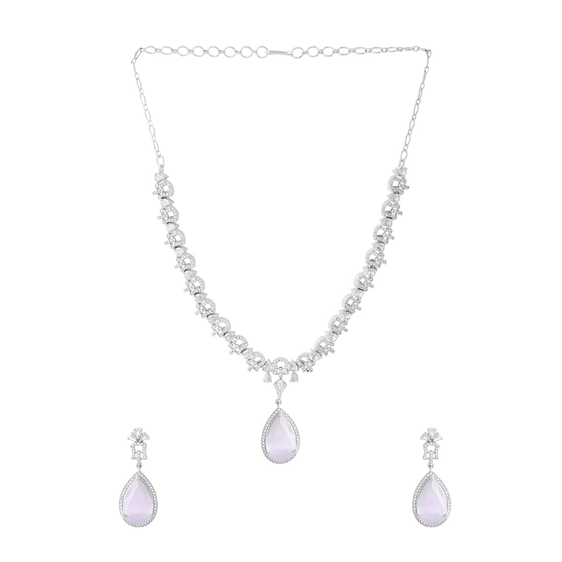 Yellow Chimes American Diamond Jewellery Set - Elegant Design | Includes Necklace & Earrings | Free Size | Grey
