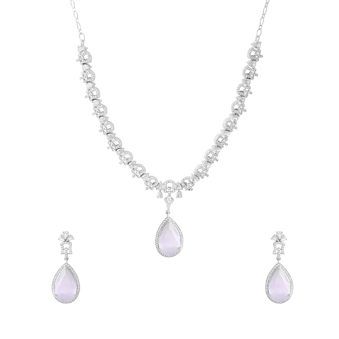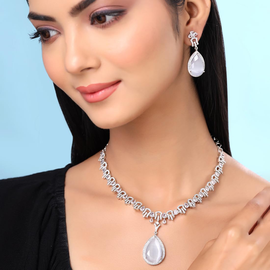 American Diamond Jewellery Set - Elegant Design | Includes Necklace & Earrings | Free Size | Grey