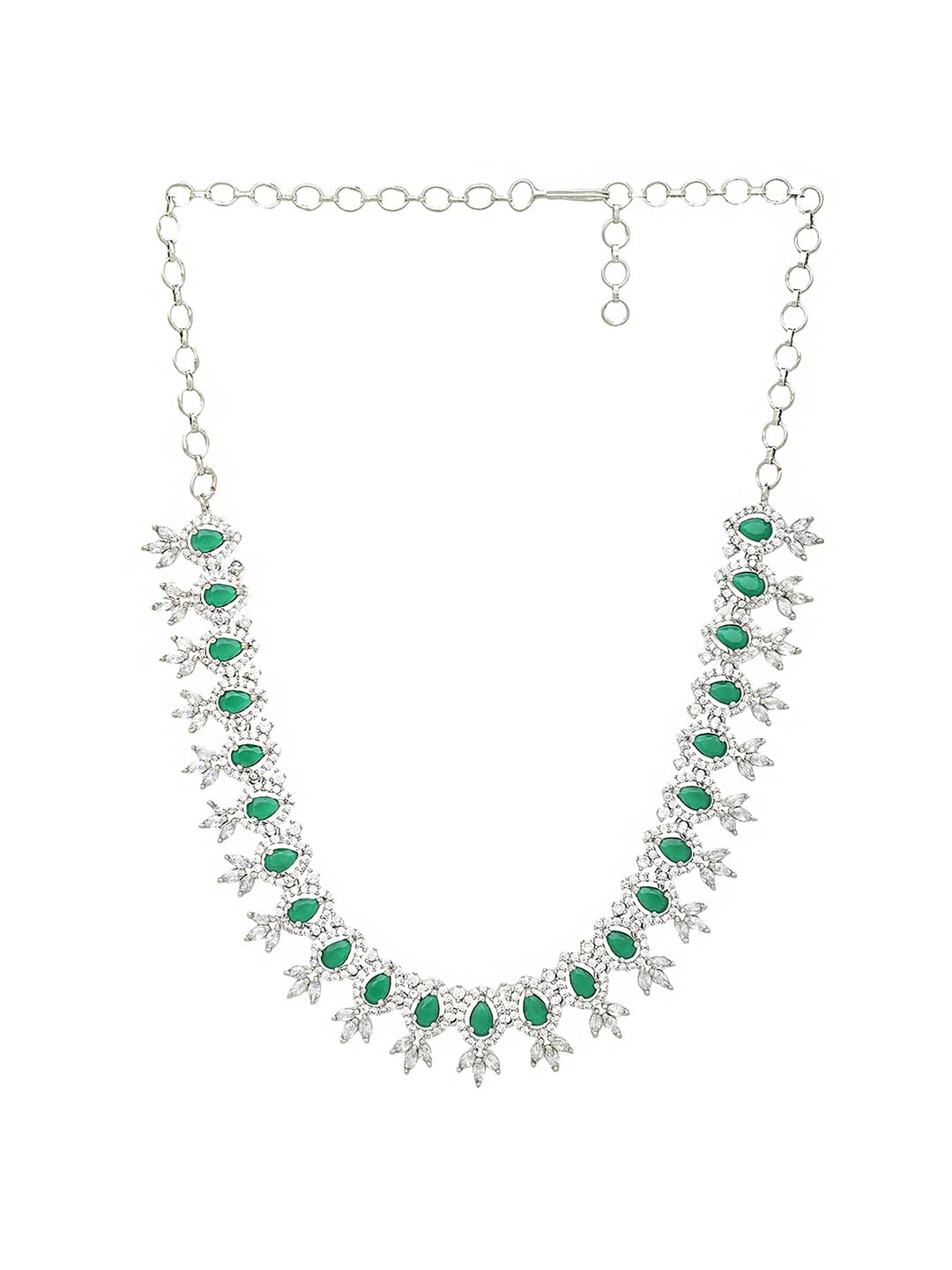 American Diamond Necklace Set For Women | Green Stone Silver Jewellery Set For Women | Diamond Necklace Set | Birthday Gift for Girls Anniversary Gift for Wife