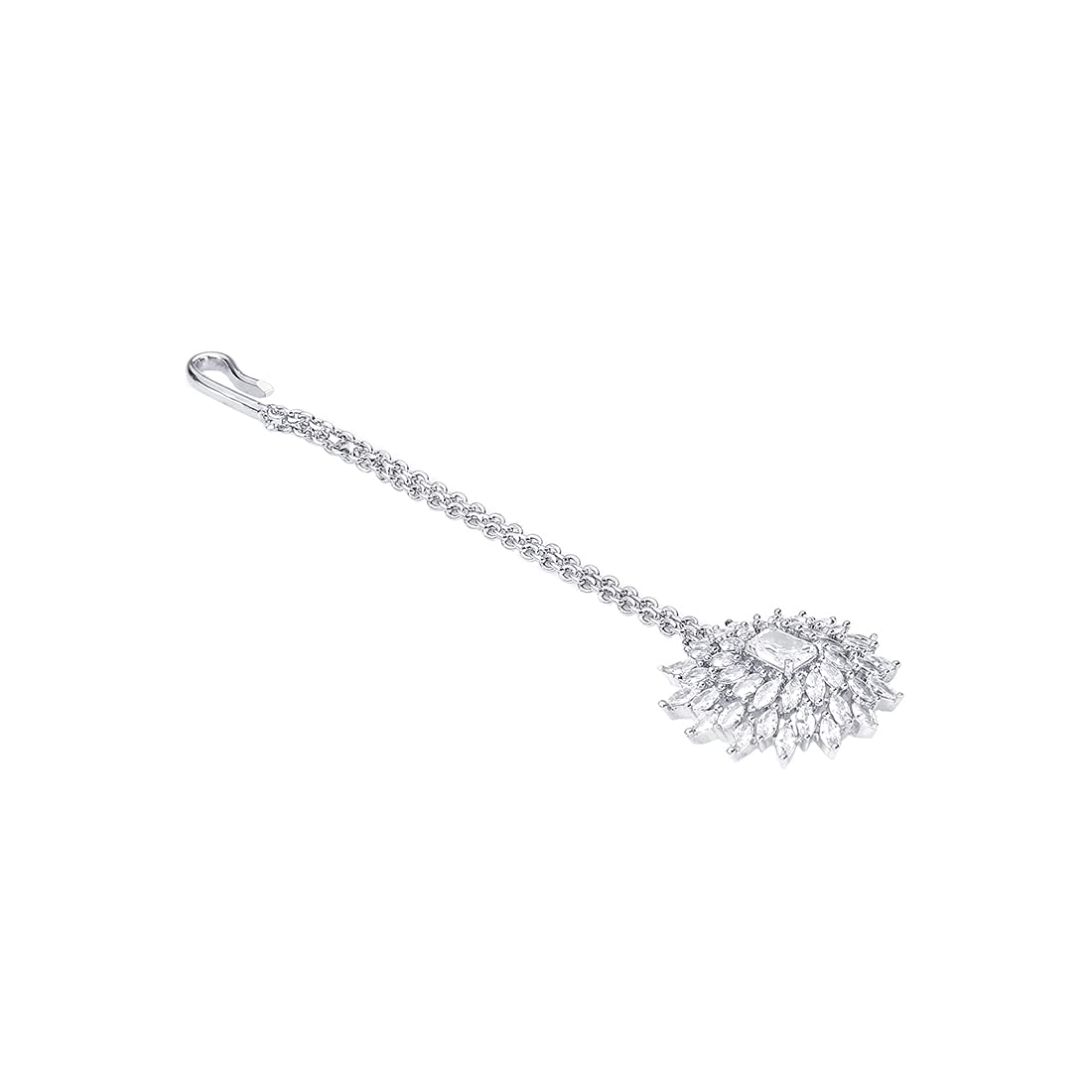Yellow Chimes American Diamond Maang Tikka for Women Rhodium Plated High Grade Authentic White AD Jewellery Maang Tikka for Women and Girls