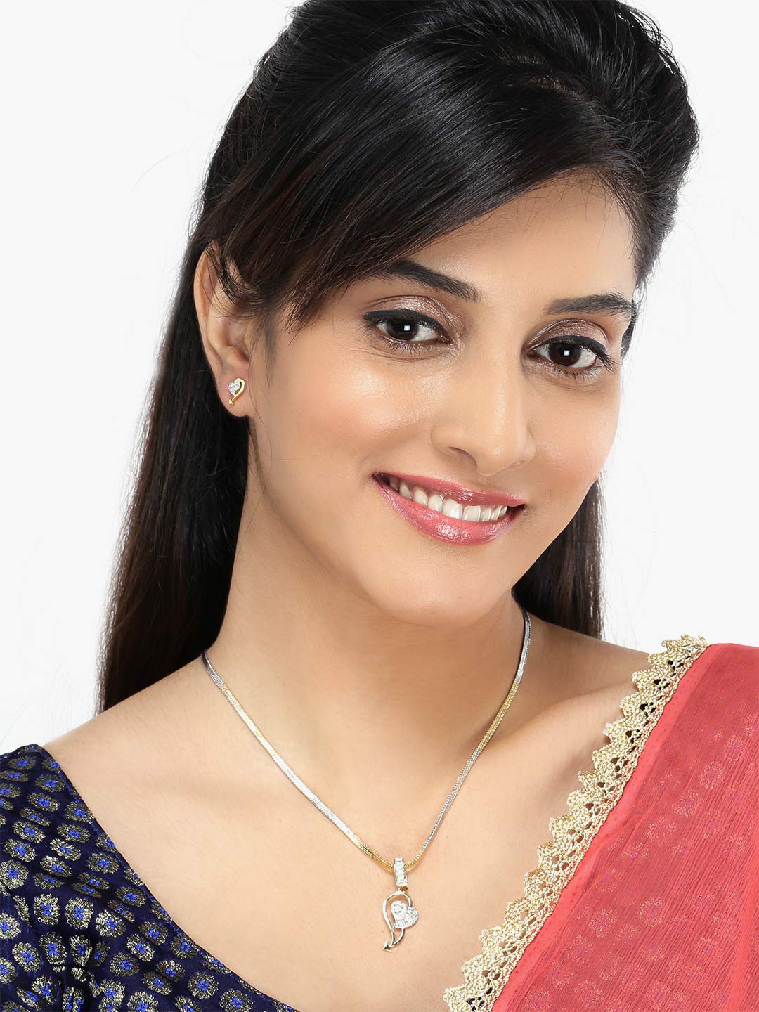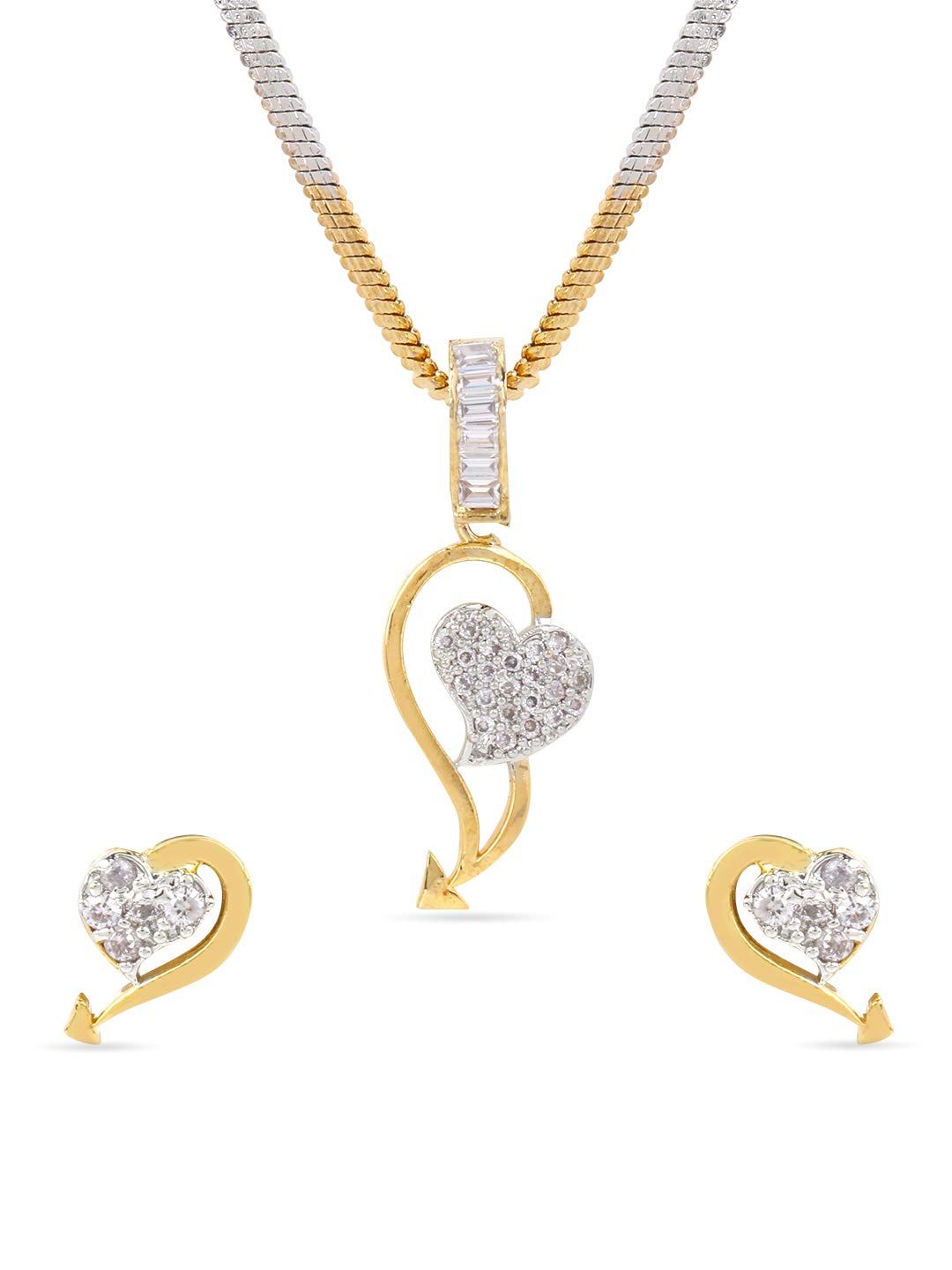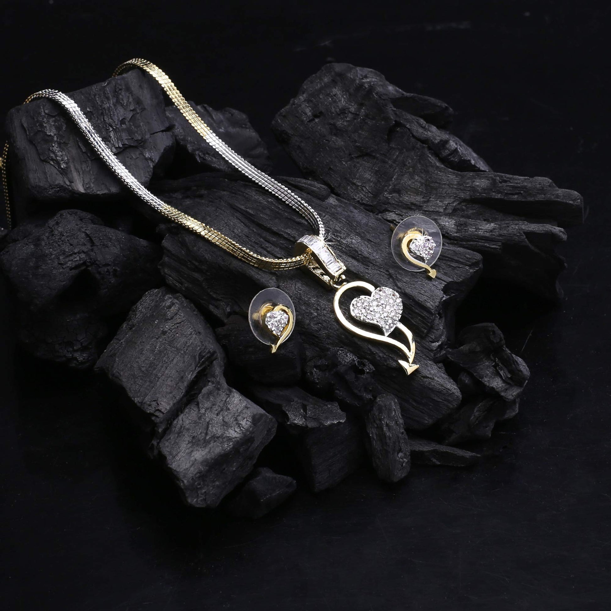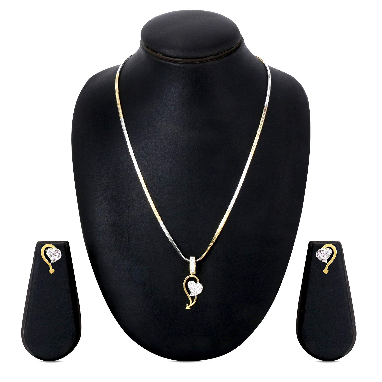 - Elegant A lovely stylish pretty party wear designer piece,Classic Dual tone chain heart pendant design in white Americal Diamond Studded pendant set with stud earrings jewellery set A5 grade clarity is stunning and preciously suitable for all kinds of occasions.
