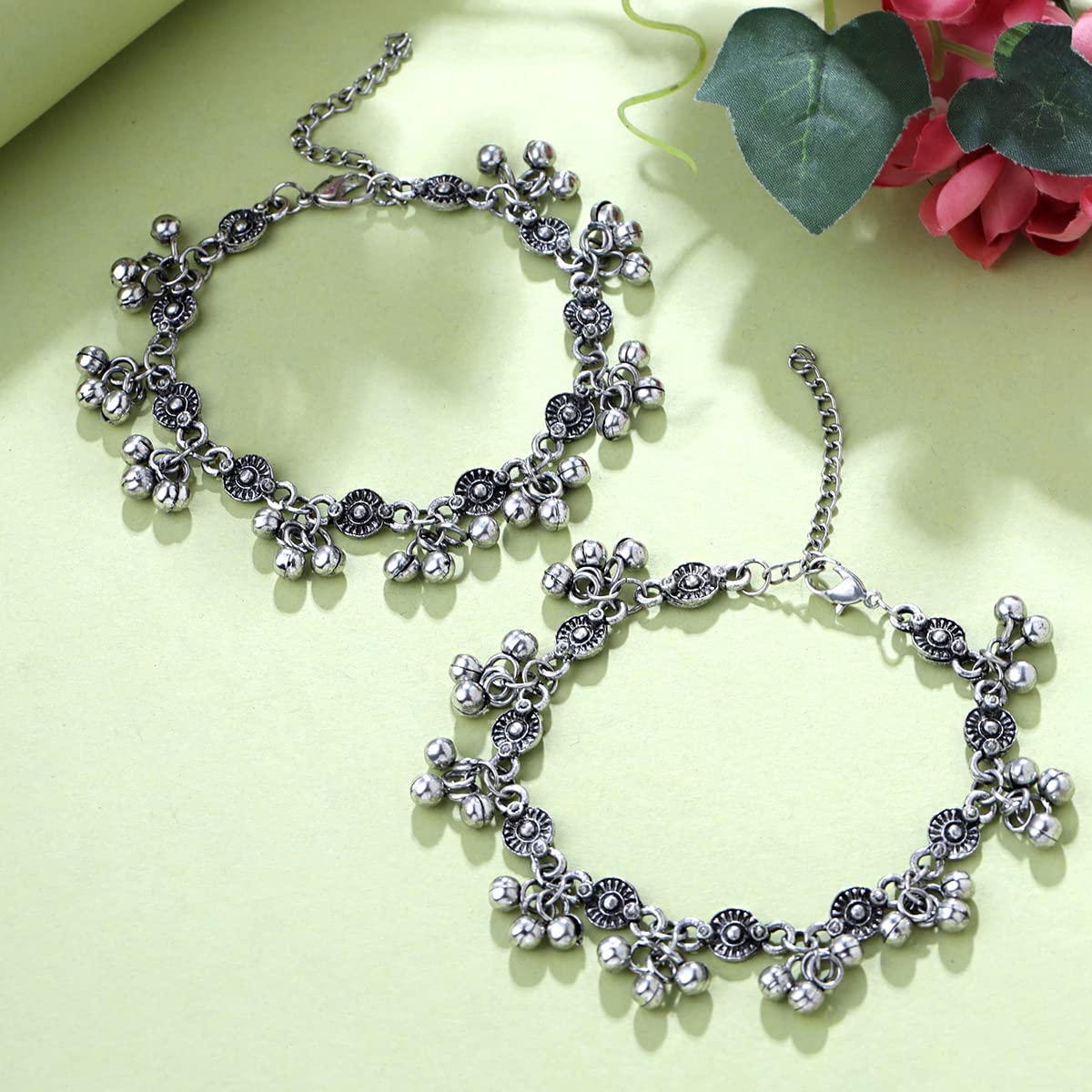 Yellow Chimes Anklets for Women and Girls Traditional Silver Oxidised Anklets for Women | Gungroo Payal for Women|Birthday Gift For girls and women Anniversary Gift for Wife