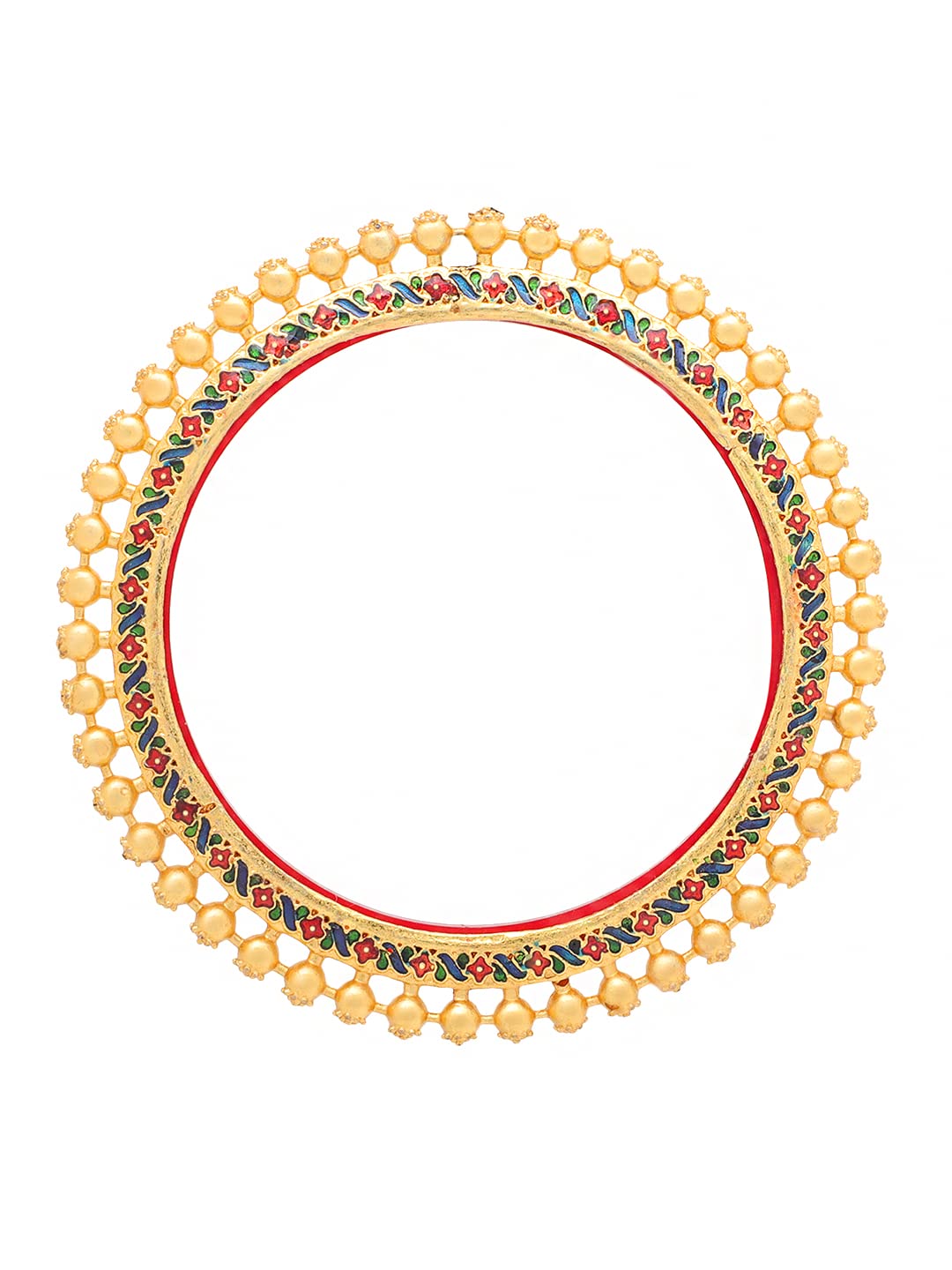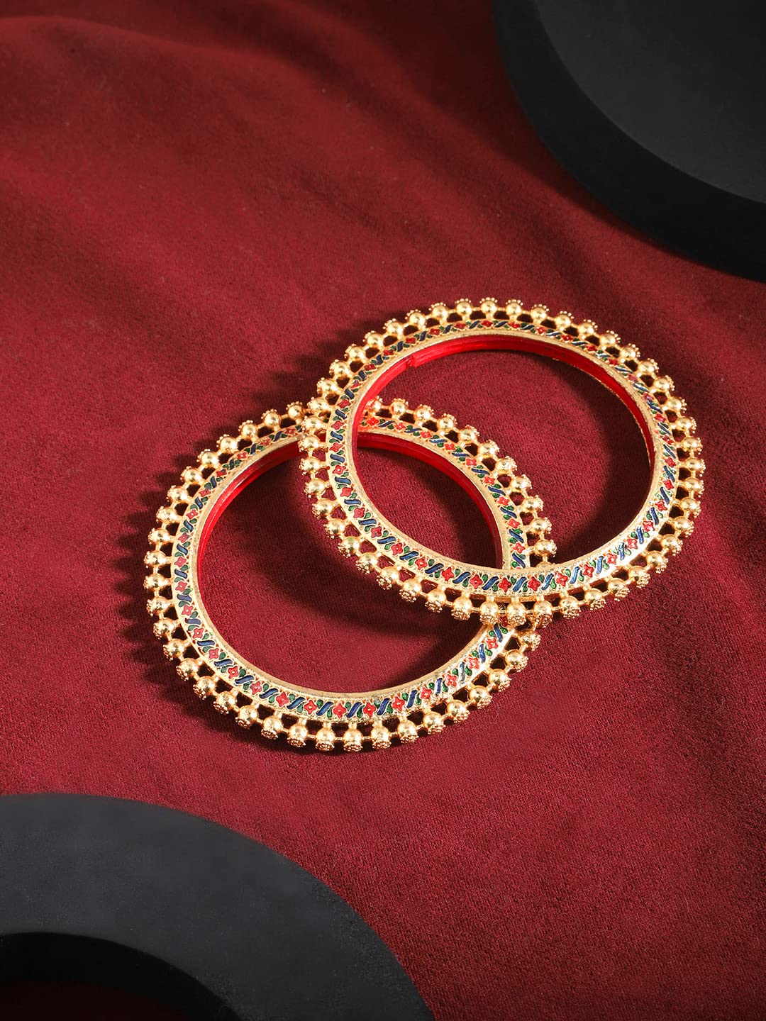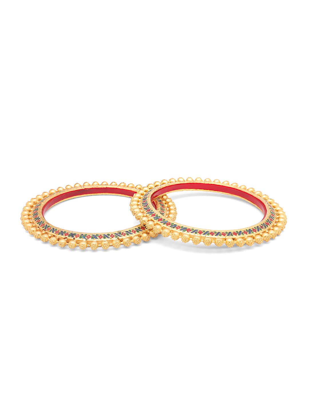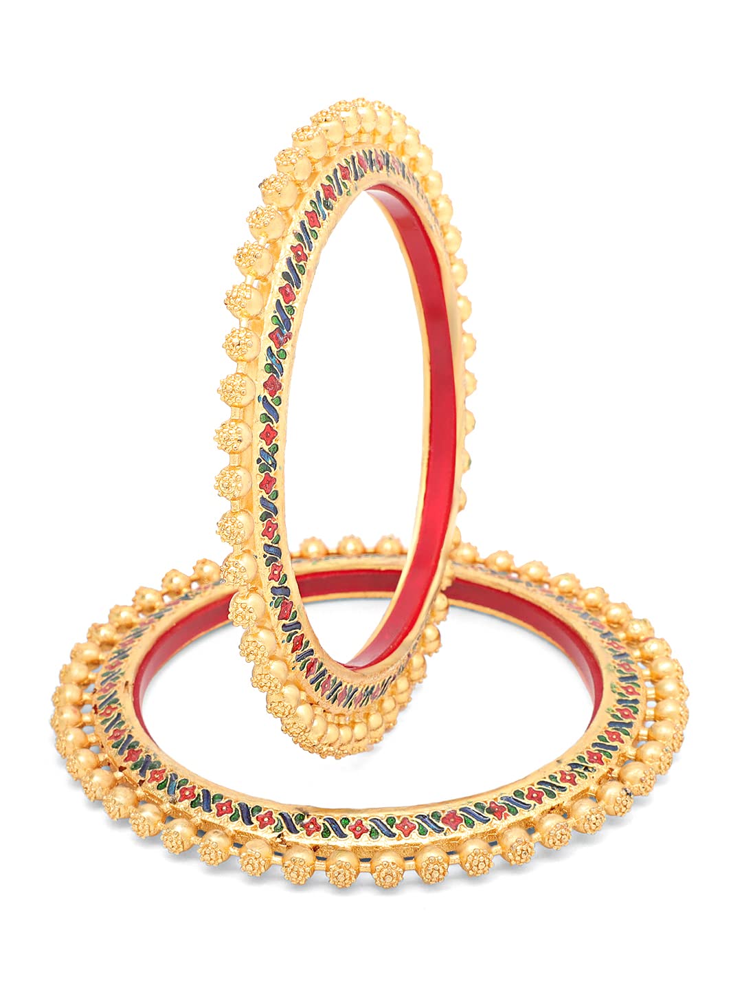 - Traditional Bangles Set with gold plating features embellishments and Artistic design. Adorn yourself with these beautiful bangles to create a feminine classic looks that makes everyone eyes on you.