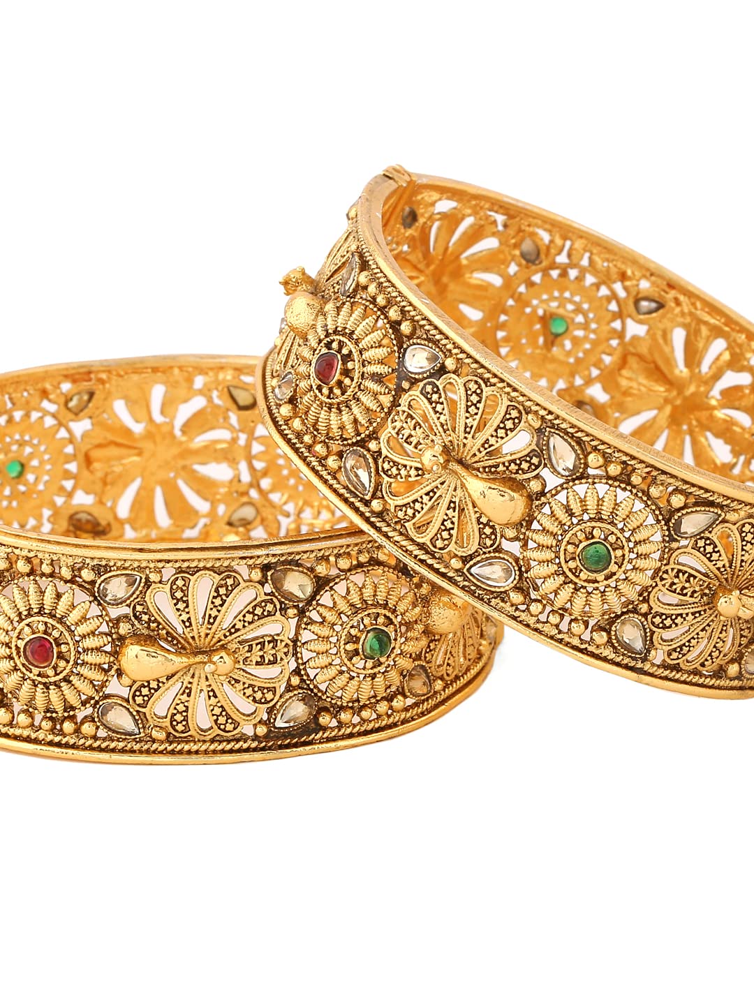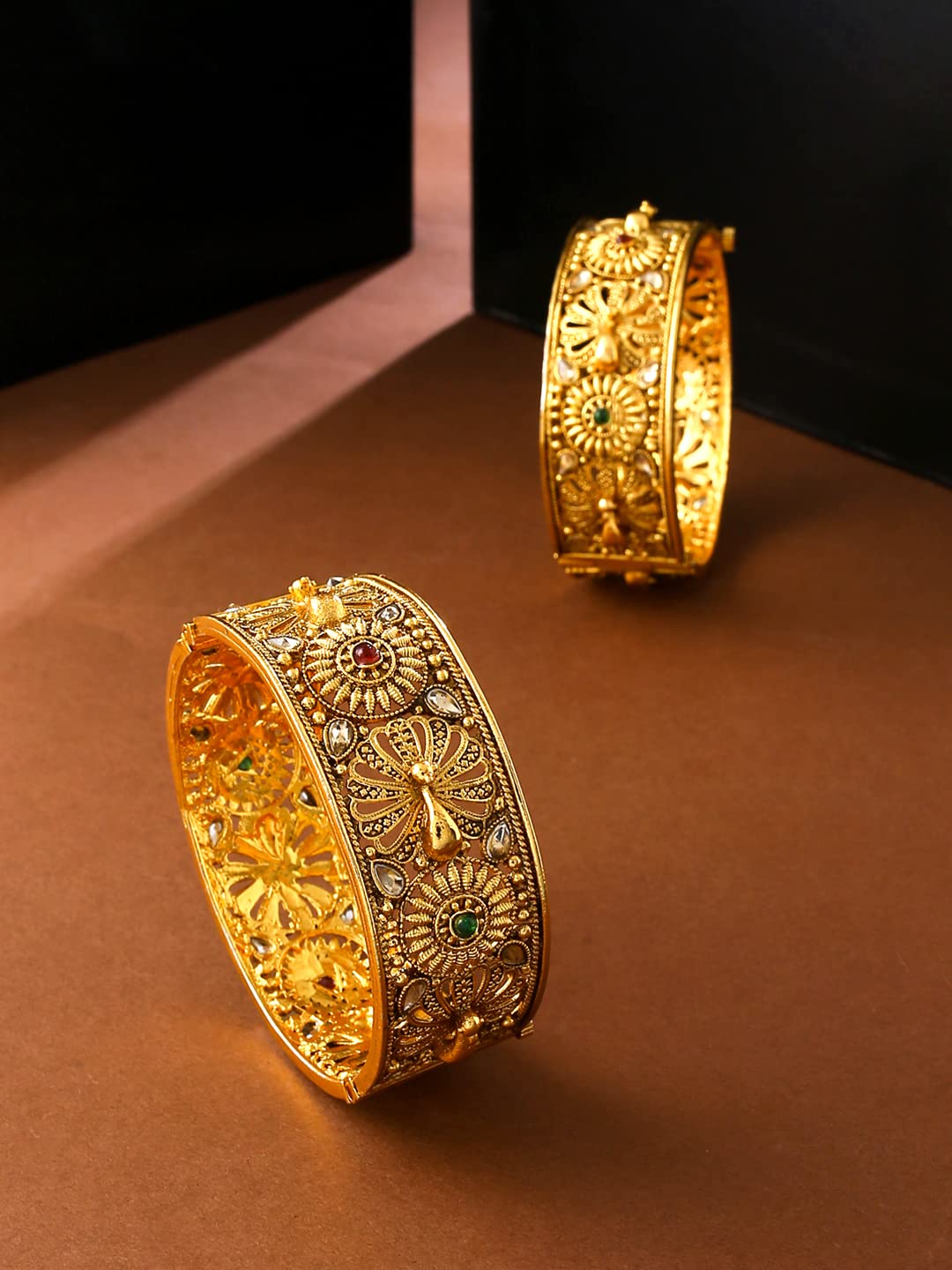 Bangles for Women Gold Toned Crystal Studded Peacock Designed Set of 2 Bangles for Women and Girls