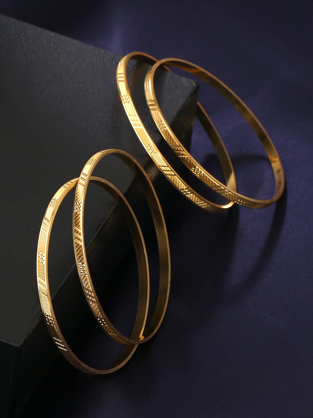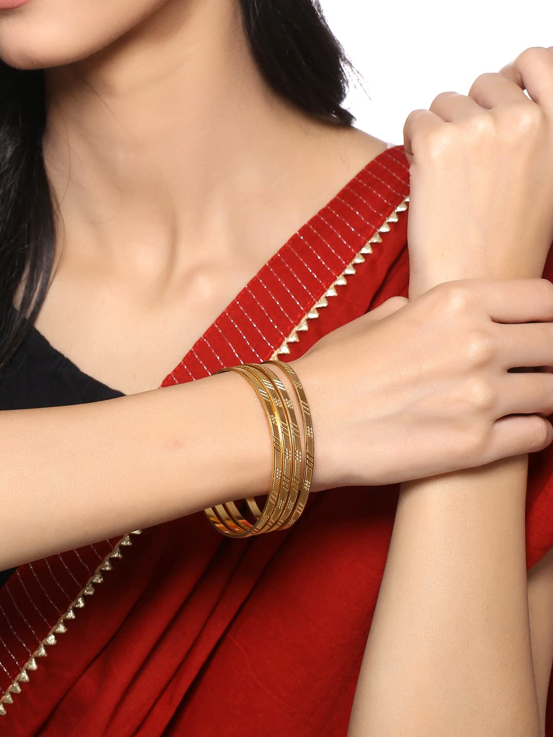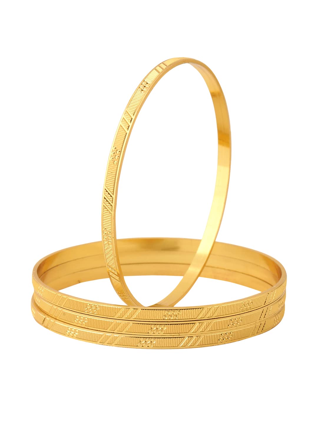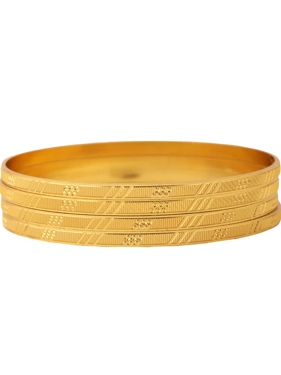 - Traditional Bangles Set with gold plating features embellishments and Artistic design. Adorn yourself with these beautiful bangles to create a feminine classic looks that makes everyone eyes on you.