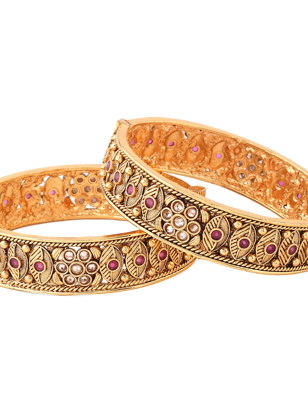Bangles for Women Gold Toned White and Red Crystal Studded Set of 2 Bangles for Women and Girls