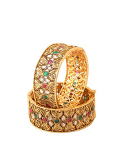 Bangles for Women Kundan and Pearl Studded Gold Toned Set of 2 Pcs Bangles for Women and Girls - Size 2.8