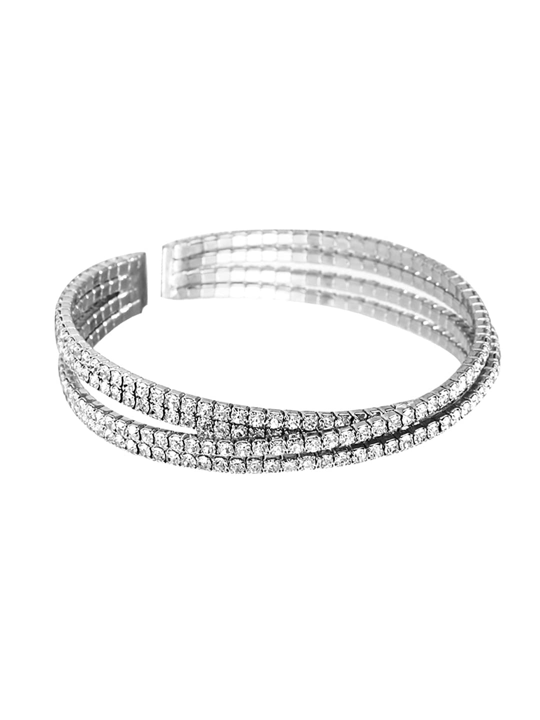 Yellow Chimes Bangles For Women Silver Toned Multilayer Crystal Bracelet For Women and Girls This Bracelets features link of sparkling Crystals in Silver Color, are perfect for outings and party wear- beautiful, unmatched Style, sparkling and feminine. Spruce up your outfit with the glitter of this contemporary Bracelet. Looks- Yellow Chimes by Globalbees brings crystal selective pieces to you that gives dazzling Looks at One Glance with Intricate High Polish. Style it with a Western attire or a traditional fusion, they are going to catch everyones Attention! Quality -used only high grade Crystals that looks like diamond. Silver polished so it doesn't turn black. Brass Metal for durability. Comfortable lightweight to be worn all day long Size Details: Width - 2CM Gift for women! - ideal valentine, birthday, anniversary gift for someone you ❤ love ❤. with our packaging box, you do not need to opt-in for any additional gift packaging. the product comes in a beautiful elegant ready-to-gift box