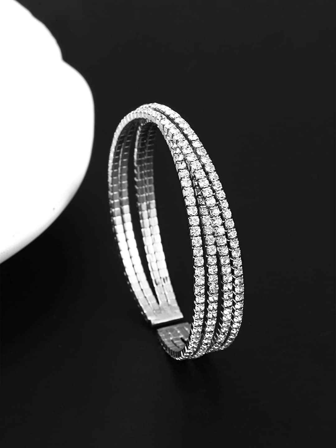 Bangles For Women Silver Toned Multilayer Crystal Bracelet For Women and Girls