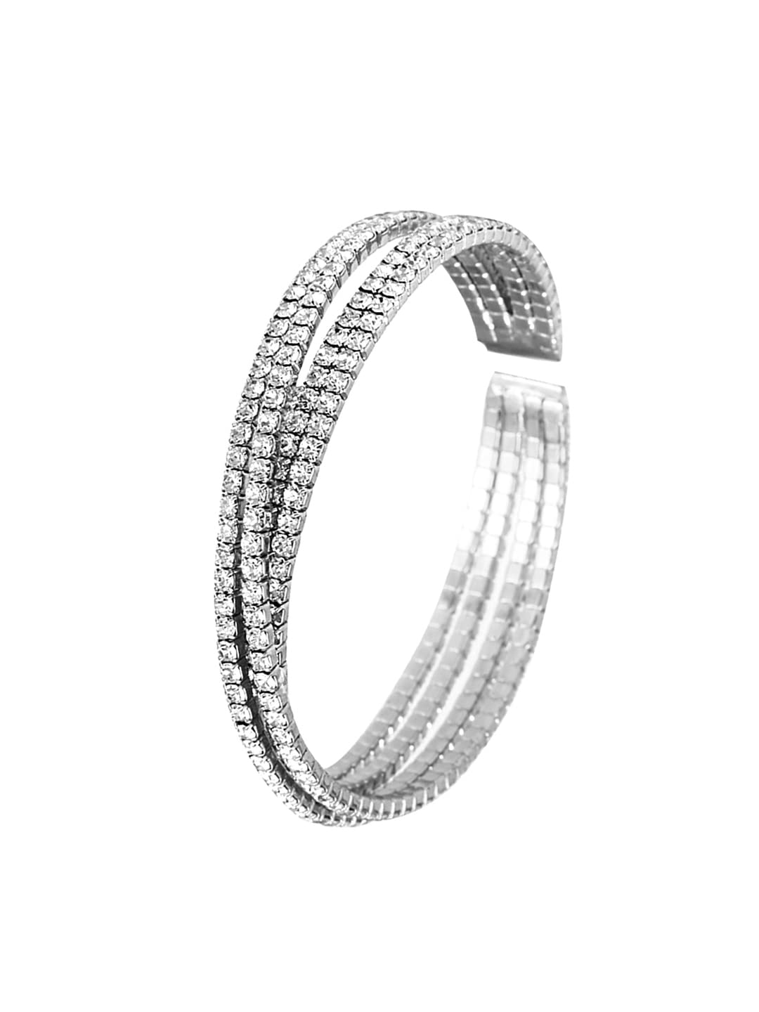 - This Bracelets features link of sparkling Crystals in Silver Color, are perfect for outings and party wear- beautiful, unmatched Style, sparkling and feminine. Spruce up your outfit with the glitter of this contemporary Bracelet.