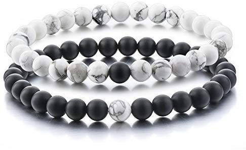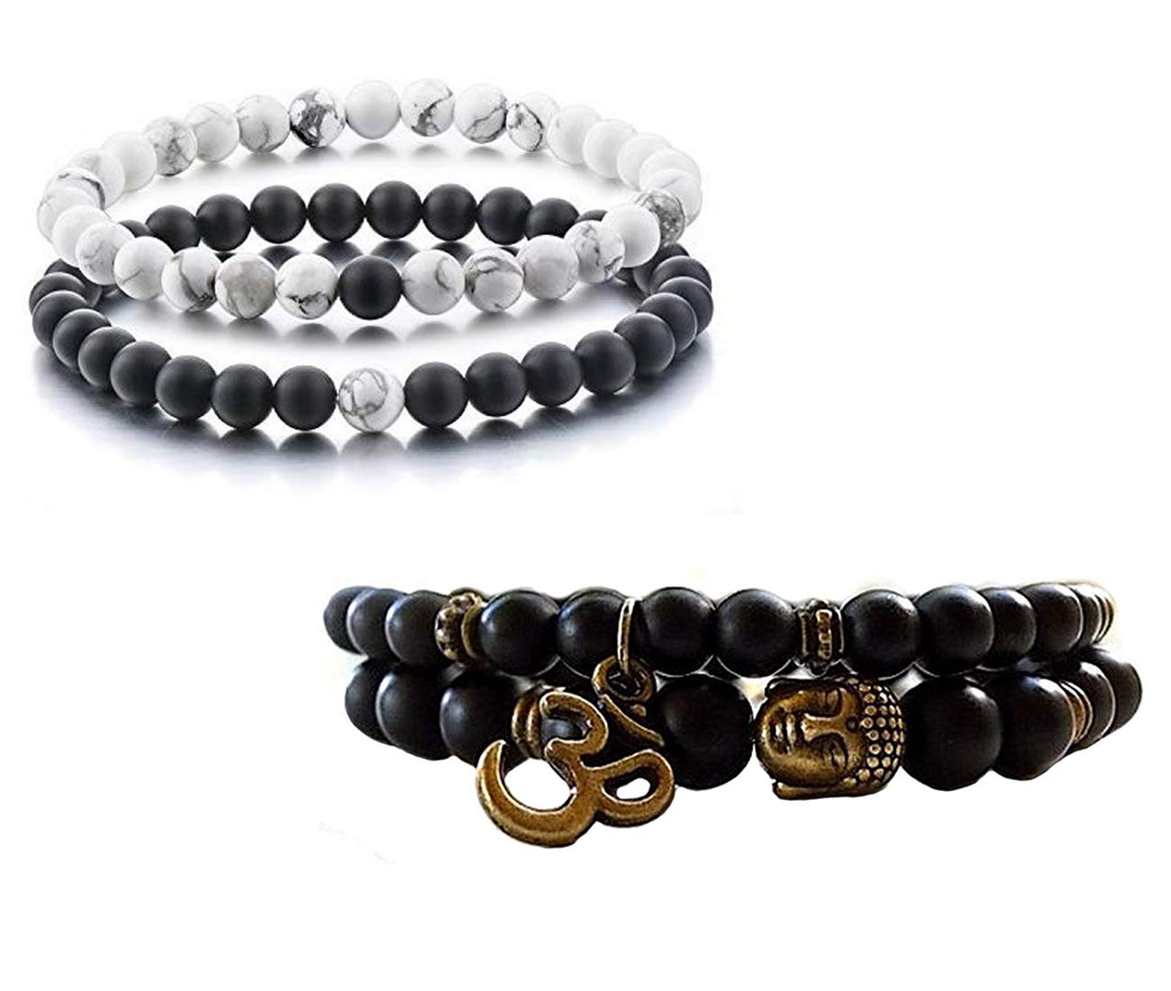 Beads Bracelet for Men D'vine Collection Howlite Lava Stone Reiki Meditation Healing Diffuser and Onyx Tiger's Eye Om Budha Couple Bracelet for Women & Men