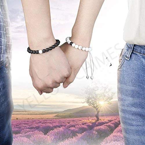 Yellow Chimes Beads Bracelet for Men D'vine Collection Howlite Lava Stone Reiki Meditation Healing Diffuser and Onyx Tiger's Eye Om Budha Couple Bracelet for Women & Men