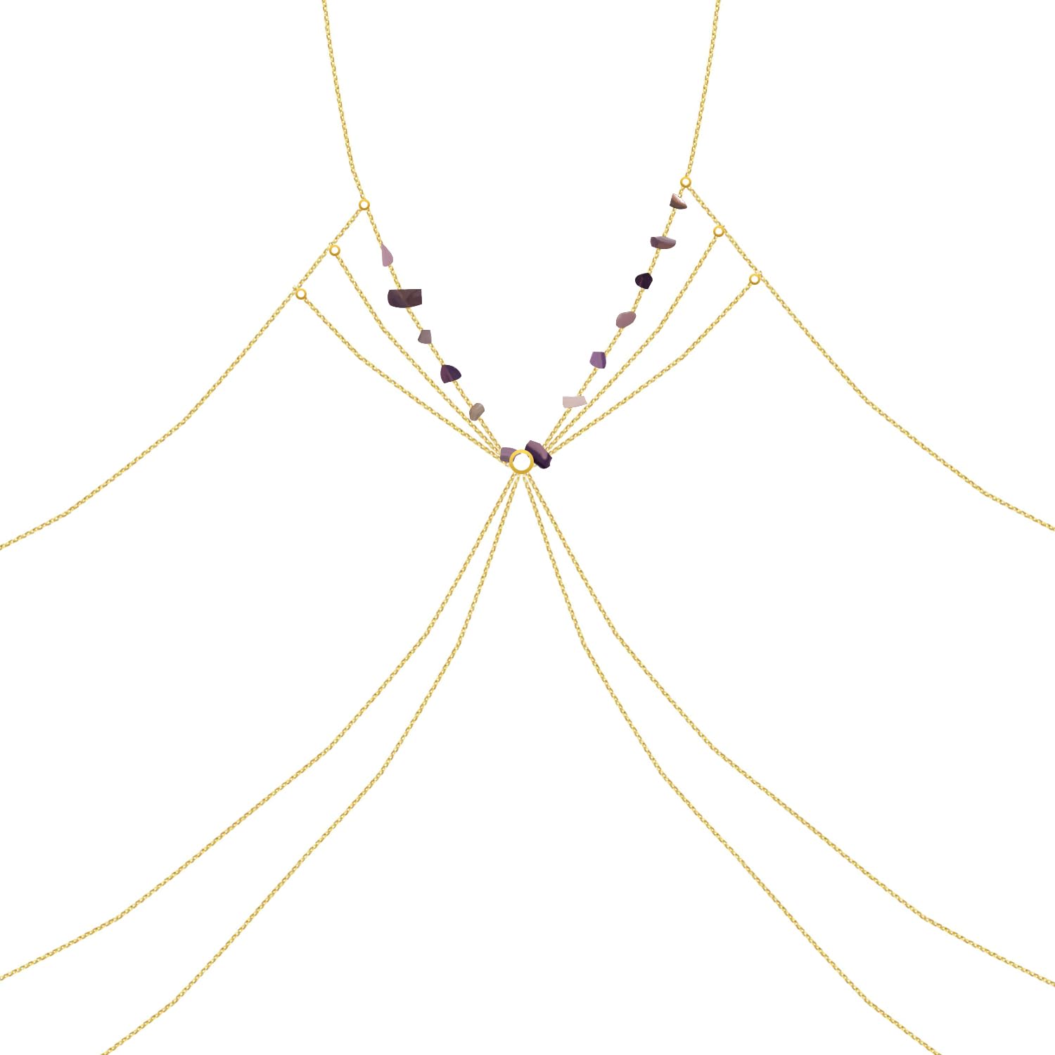 Discover the enchanting allure of the Yellow Chimes Body Chain—a stunning layered gold-toned piece adorned with elegant purple beads. Perfect for women and girls alike, this body chain serves as a striking embellishment that turns any outfit into a fashion statement.
