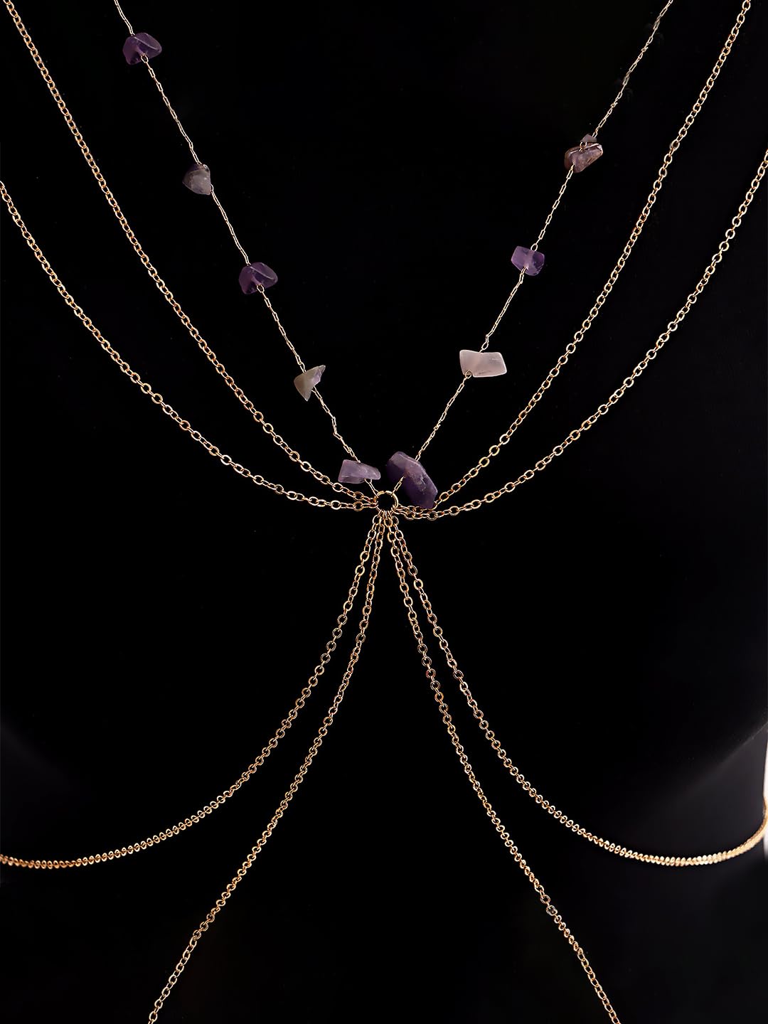 Body Chain For Women Layered Gold Toned Purple Beaded Body Chain For Women and Girls