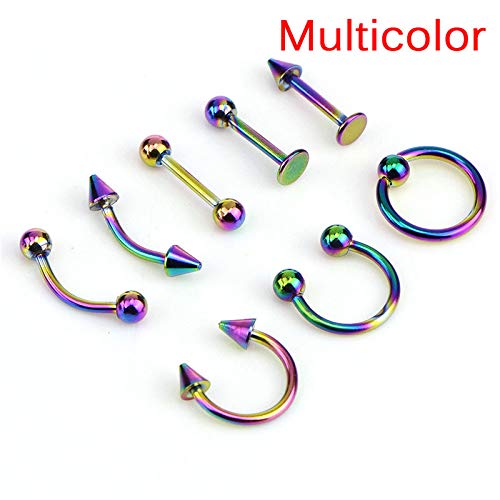Body Piercing Jewelry for Unisex 8 pcs Set Helix Body Piercing Ear Eyebrow Nose Lip Stainless Steel Cartilage Body Jewelry for Women and Men.