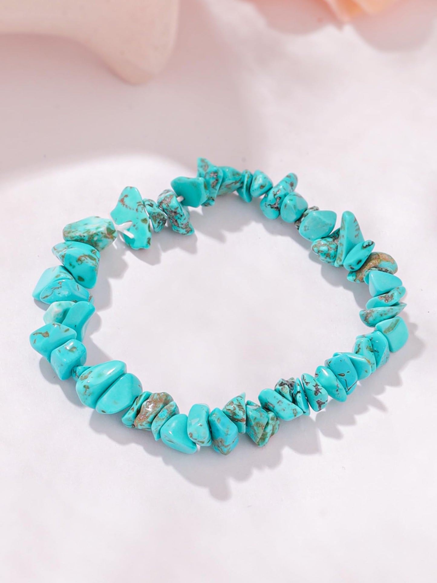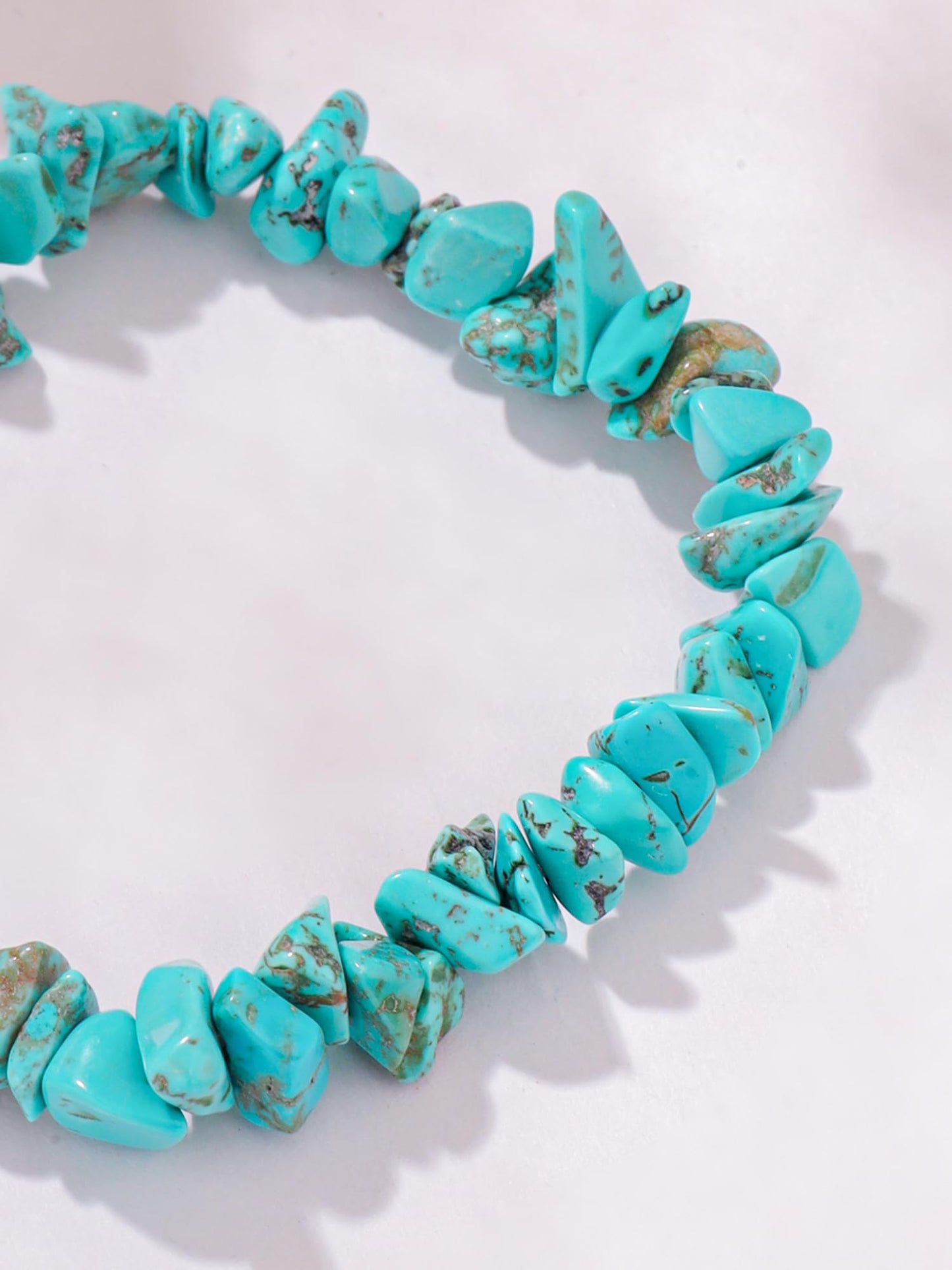 - his Turquoise strand bracelet is so simple but instantly uplifts your look with a pop of color! The boho-chic turquoise bracelet features turquoise gravel beads.Turquoise encourages inner healing through it's ability to enhance empathy & caring.